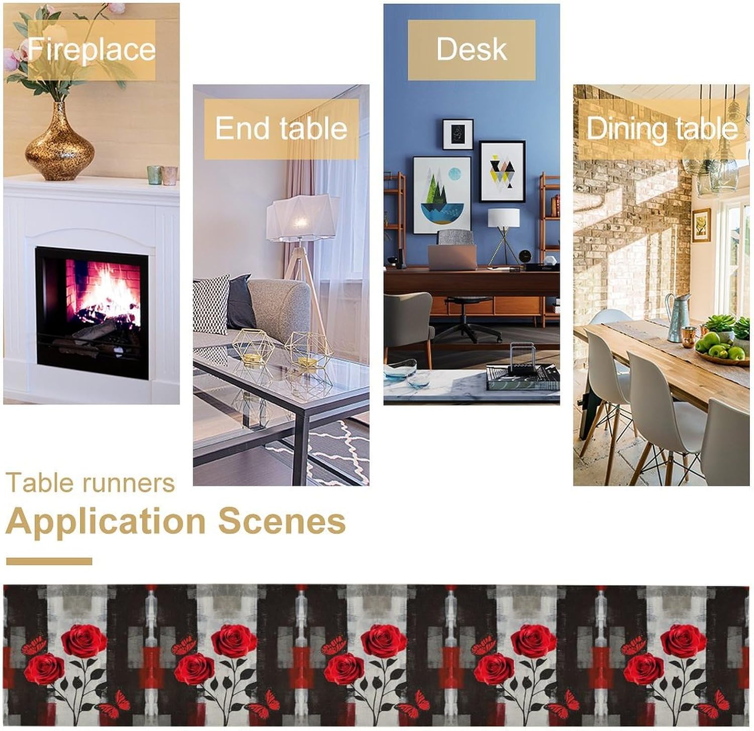 Abstract Art Rose Table Runner, Red Roses Floral Butterfly Black Red Grey Ink Background Pattern Kitchen Dinning Table Runner for Indoor Outdoor Home Wedding Party Holiday, 13x60 Inch