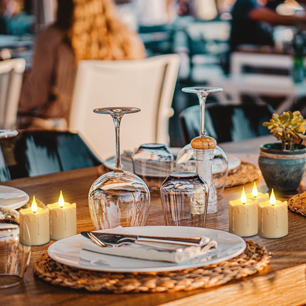 - 【Safe and Flameless】: These battery tea lights are clean, bright, and free from toxic substances. Enjoy the beauty of candlelight without the worry of flames or smoke. These flameless LED candles provide a safe alternative for all your romantic scenes, from weddings to anniversaries, ensuring a cozy atmosphere without the risks associated with real candles.