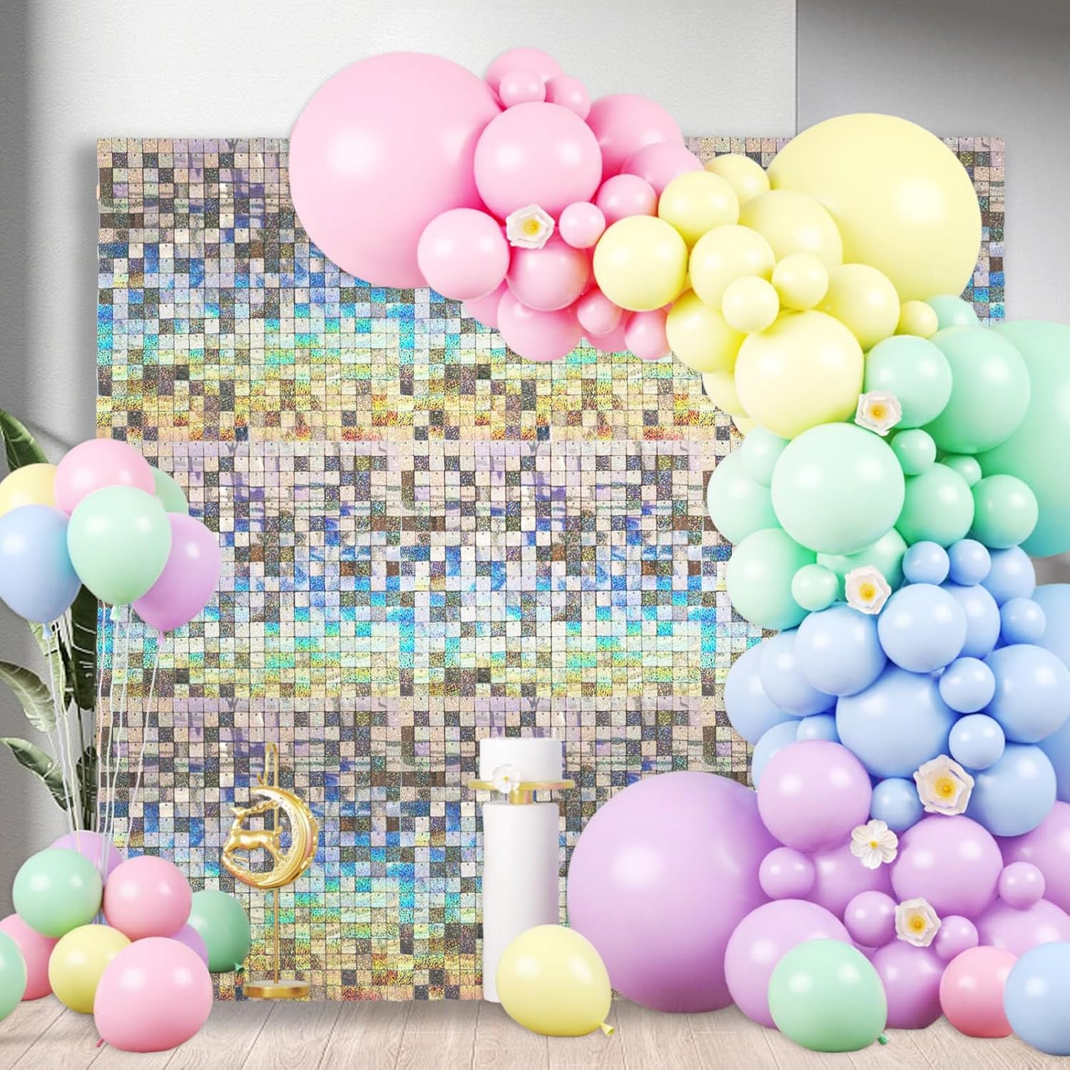 - 【Shiny Backdrop Decoration】Laser sequin wall panels are the best idea for party backdrop. Perfect for birthday, wedding, engagement, bachelorette, disco, stage background, bridal shower, baby showers, anniversary, ceremony, graduation, photography, Halloween, Christmas, New Years and more Party Decorations. Create a Shiny nice atmosphere for your party.