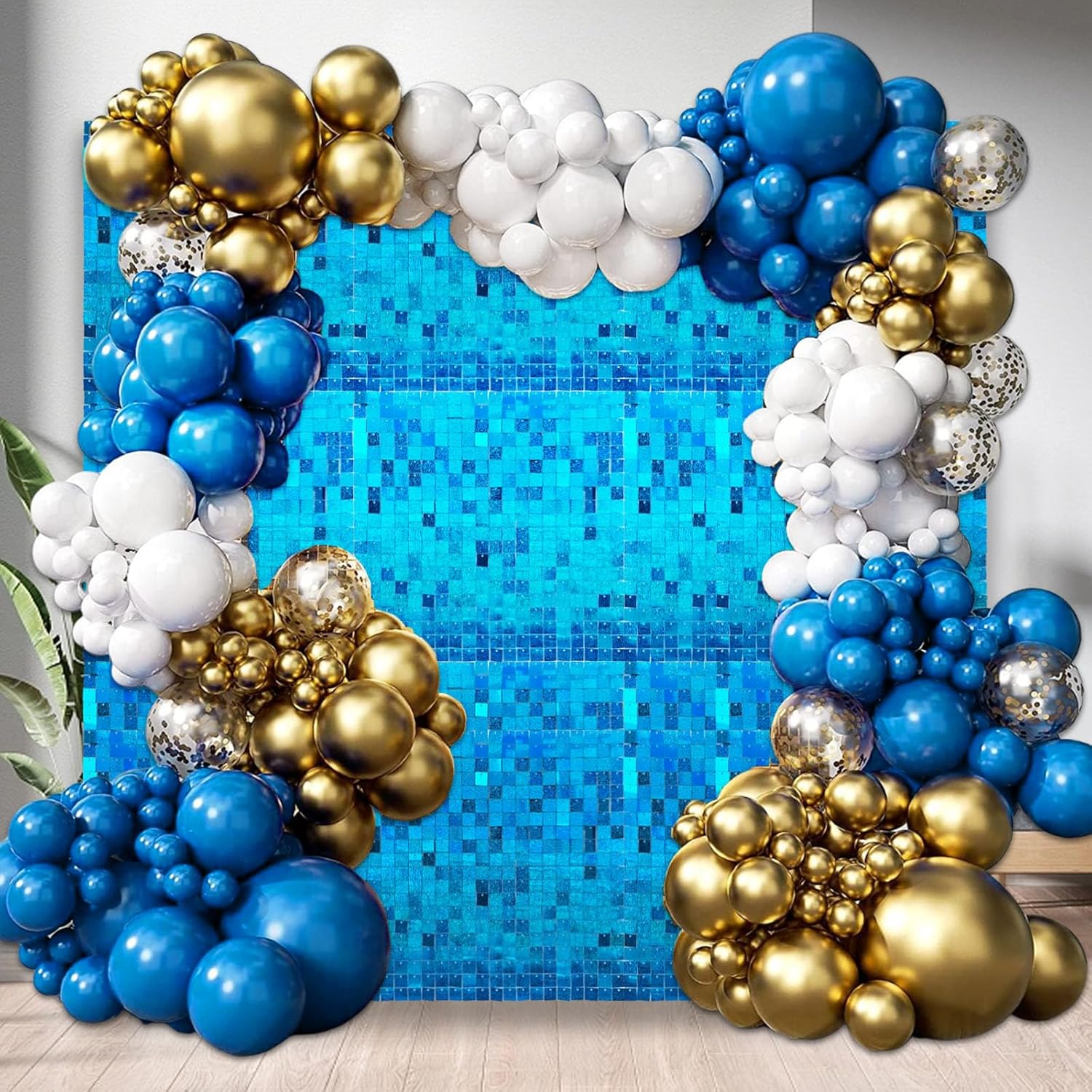 - 【Shimmer Wall Backdrops】The sequins of the lake blue laser glitter wall panels will move with the wind and sparkle when the light hits them. You can match it with any balloon, wall, outdoor or indoor backdrop to a fantastic shiny photo backdrop, creating a nice shiny atmosphere for your party.