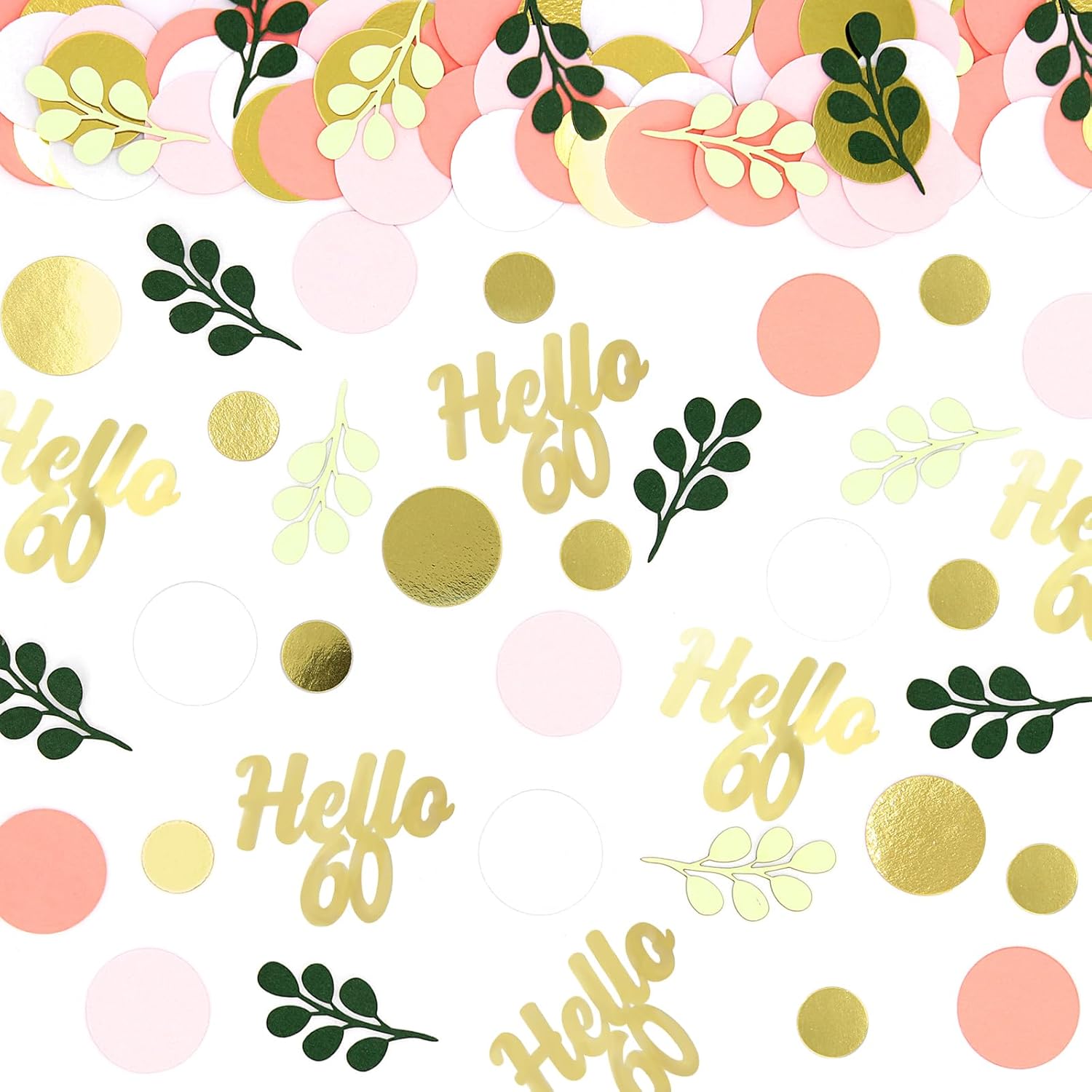 - 2.The hello 60 confetti for tables pack include 3 elements(round dots/sage leaf/hello 60 letters) ,total 300pc,nice for 60th birthday table decorations for her.