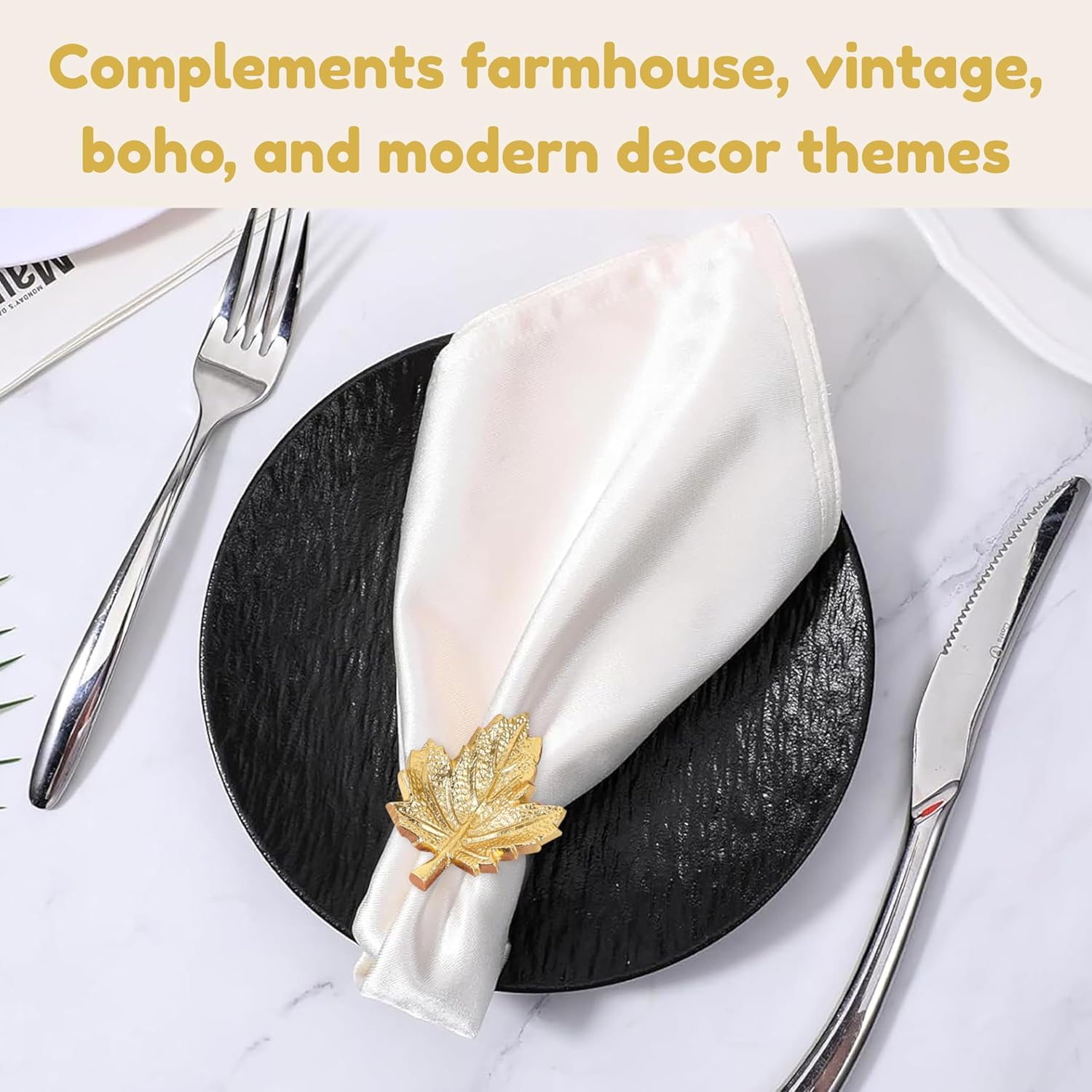 Set of 12 Maple Leaf Napkin Rings - Handcrafted Aluminum Napkin Holders for Cloth & Paper Napkins, Elegant Table Décor for Weddings, Thanksgiving, Christmas & Holiday Parties (Gold) - CLEENTABLE