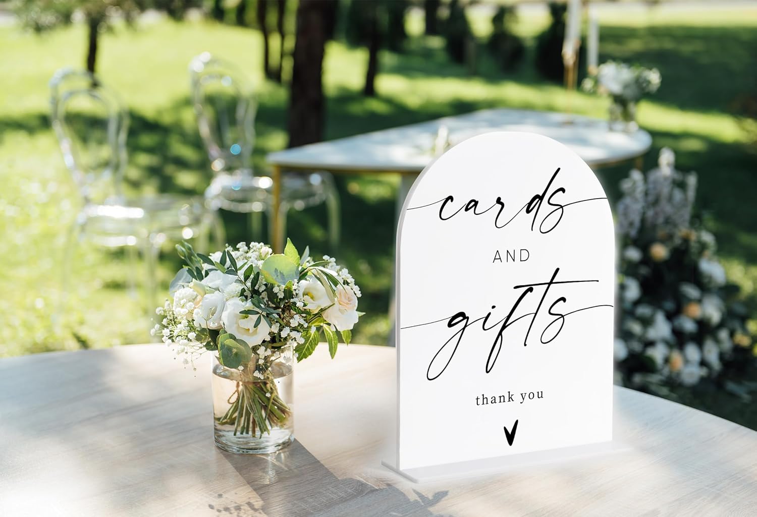 Cards and Gifts Sign, White Arch Acrylic Wedding Sign, Wedding Favors for Guests, Bridal Shower Decor, Engagement Party Decor, Centerpiece Table Decorations Party for Bride and Groom-2