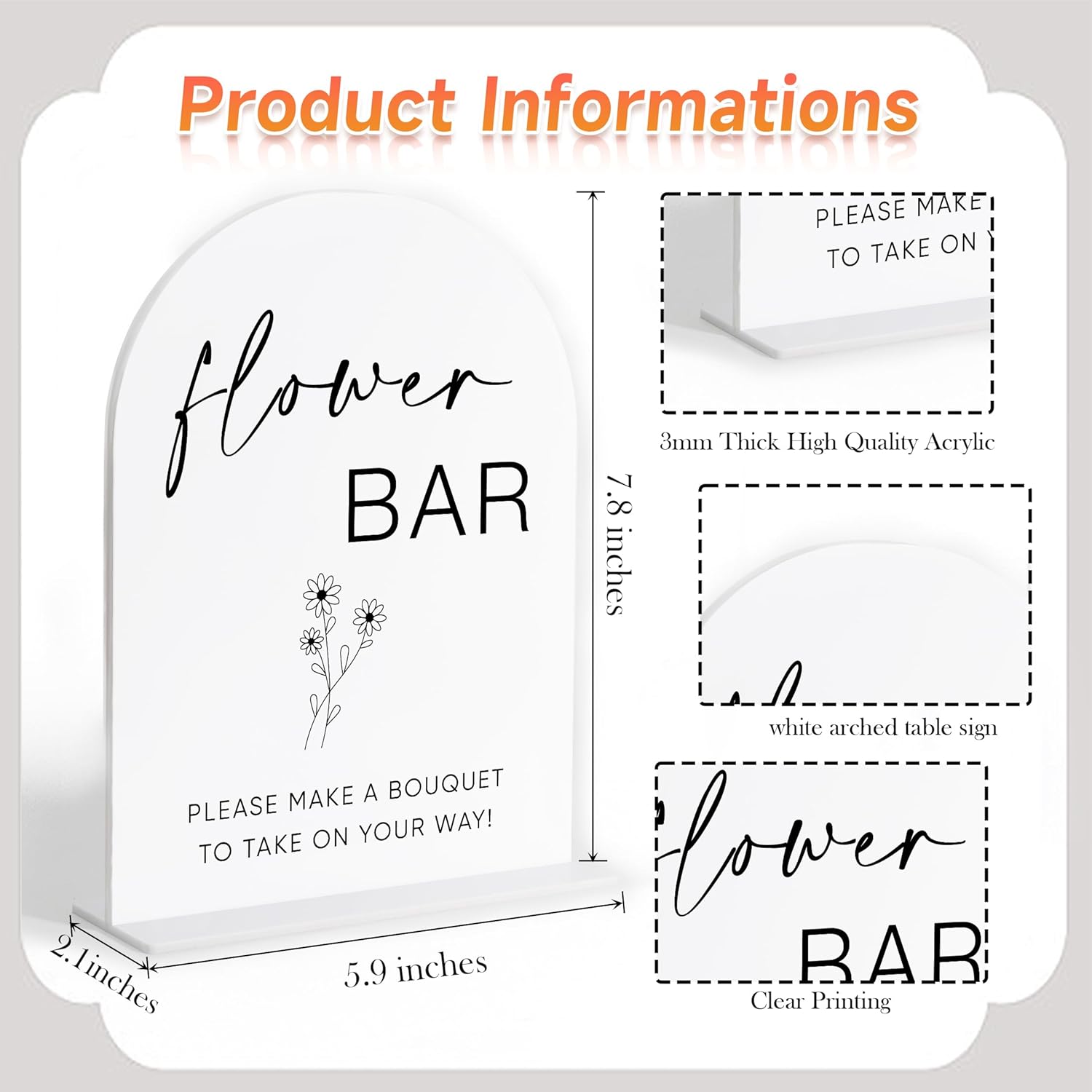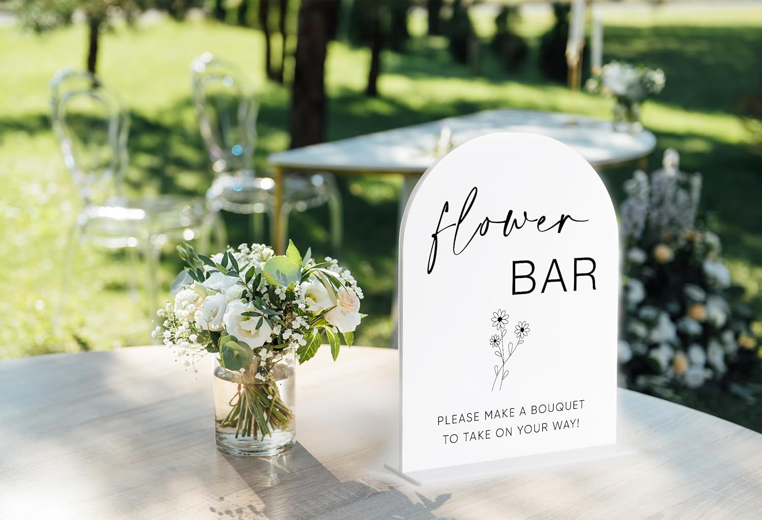 Flower Bar Sign, White Arch Acrylic Wedding Sign, Flower Bar Supplies, Wedding Reception Decorations, Bridal Shower Decor, Engagement Party Decor, Centerpiece Table Decorations Party-11