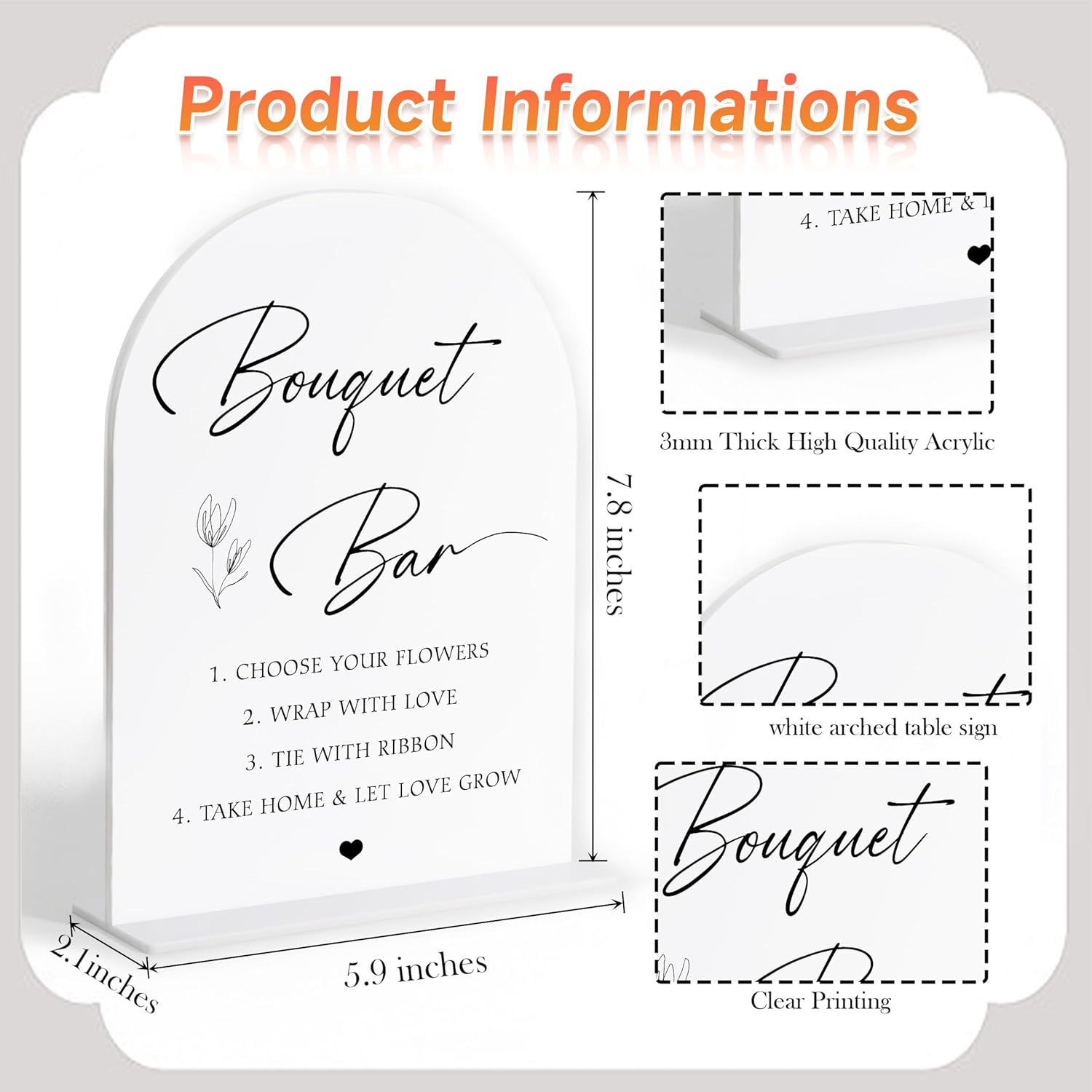 Bouquet bar Sign, White Arch Acrylic Wedding Sign, Flower Bar Supplies, Wedding Reception Decorations, Bridal Shower Decor, Engagement Party Decor, Centerpiece Table Decorations Party-9