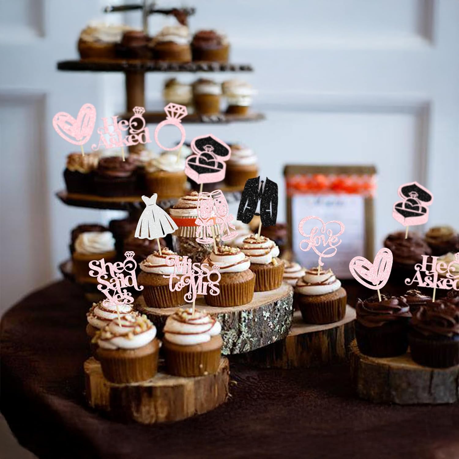 - --Package included: 30Pc She Said Yes Cupcake Toppers Cupcake Toppers. Comes with assembled, so you can insert into your cake directly, which make your cake more interesting.