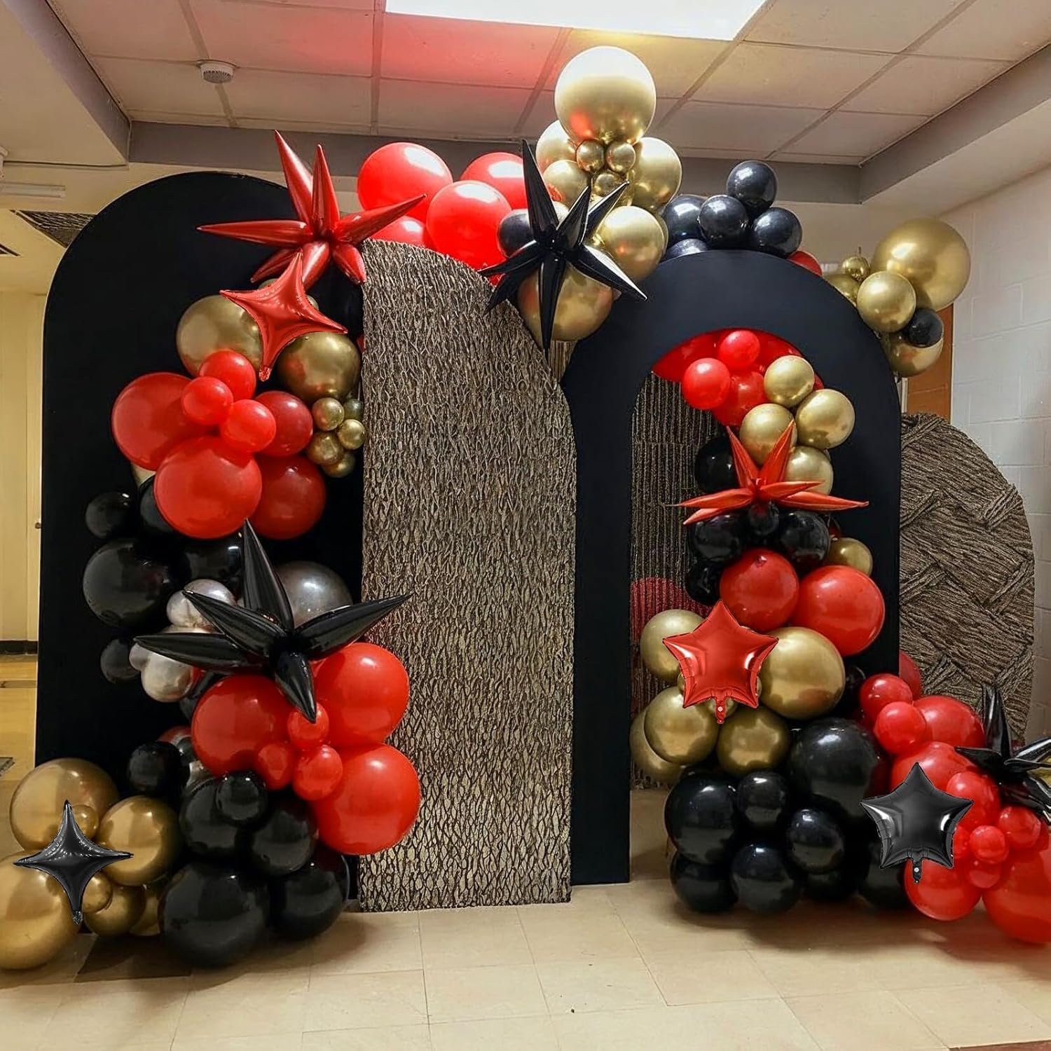 - Package: This set includes 6pcs 22inch explosion star foil balloons(red*3, black*3), 4pcs 10inch star foil balloons(red*2, black*2), 6pcs 10inch four angle star balloons(red*3, black*3), and a ribbon. Perfect for creating a dazzling party atmosphere.