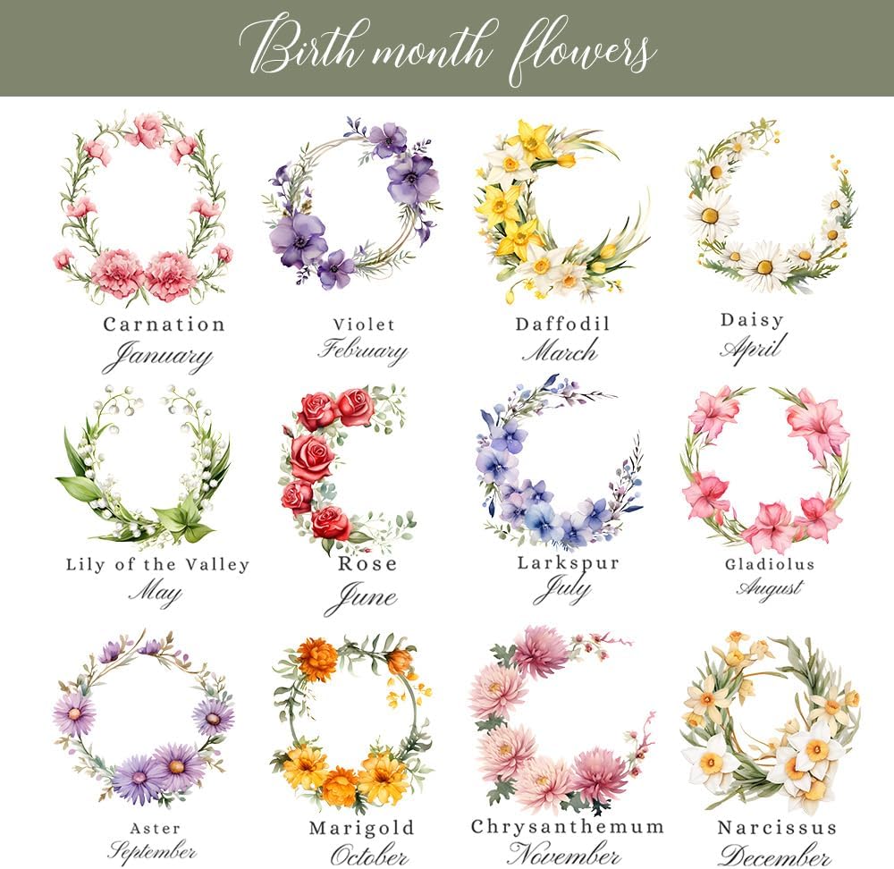 - Custom Wedding Table Numbers: This table numbers for wedding reception features an elegant design with birth flower and a birth tree, symbolizing the couple’s unique bond. Customize it with bride and groom’s names, wedding date and table number