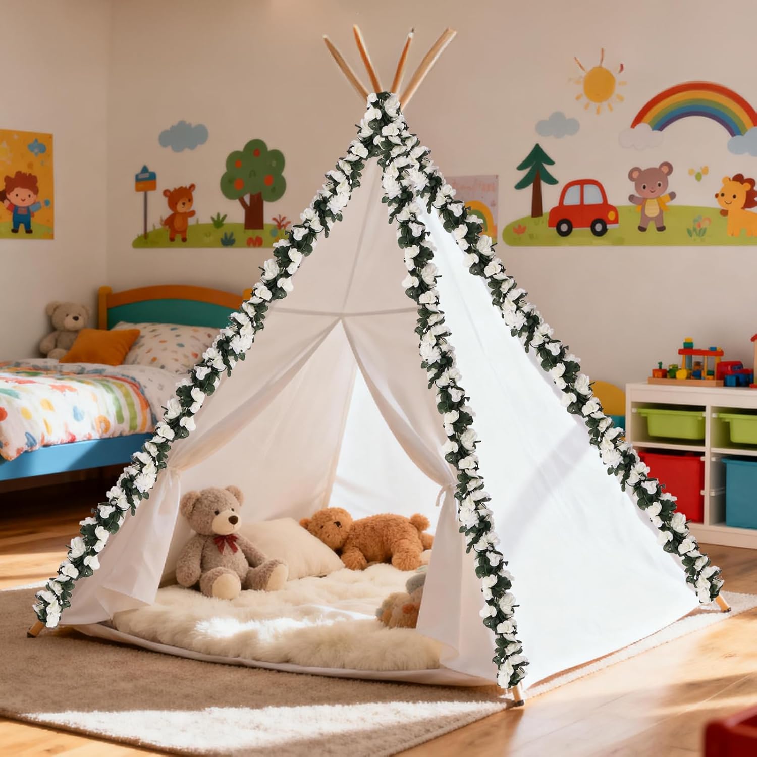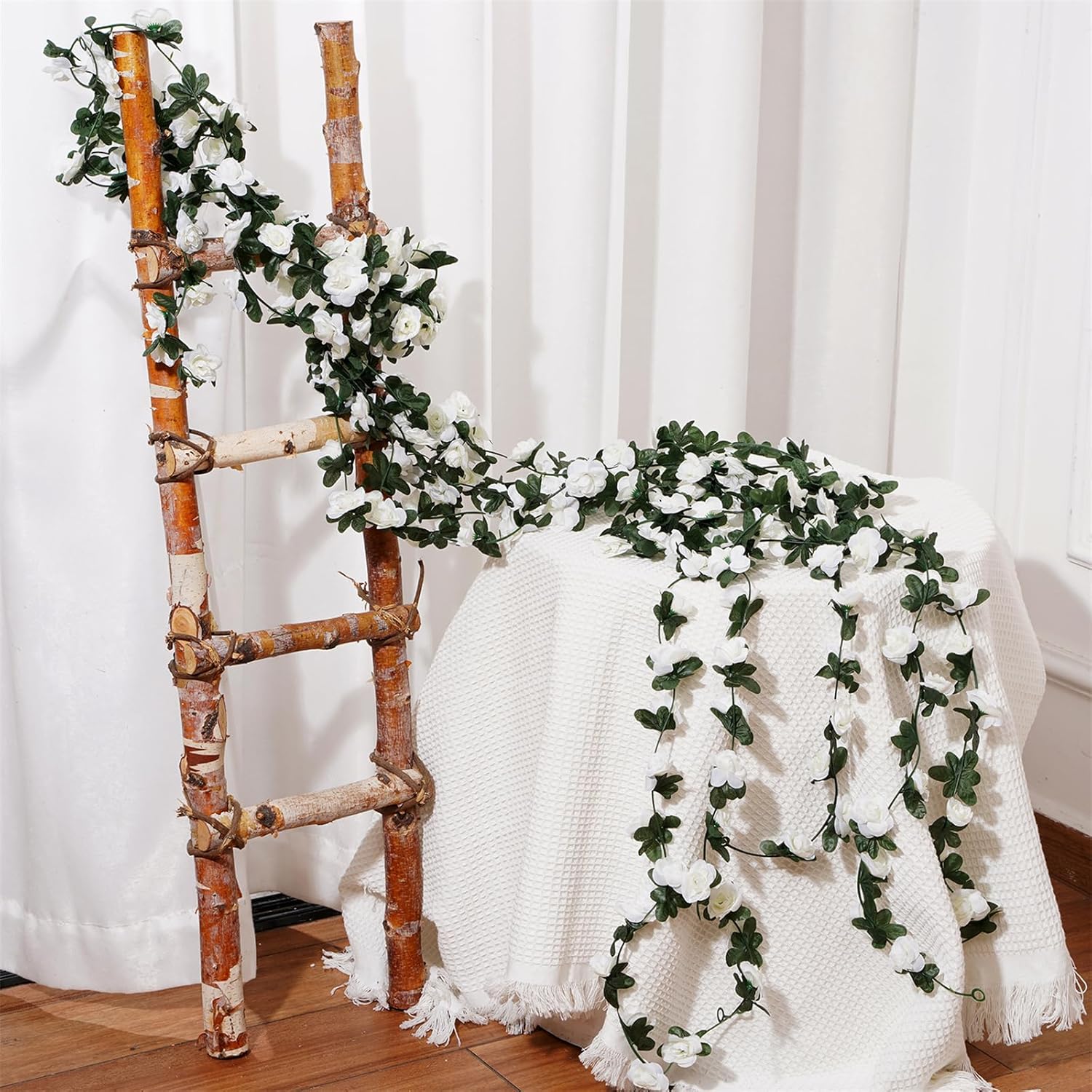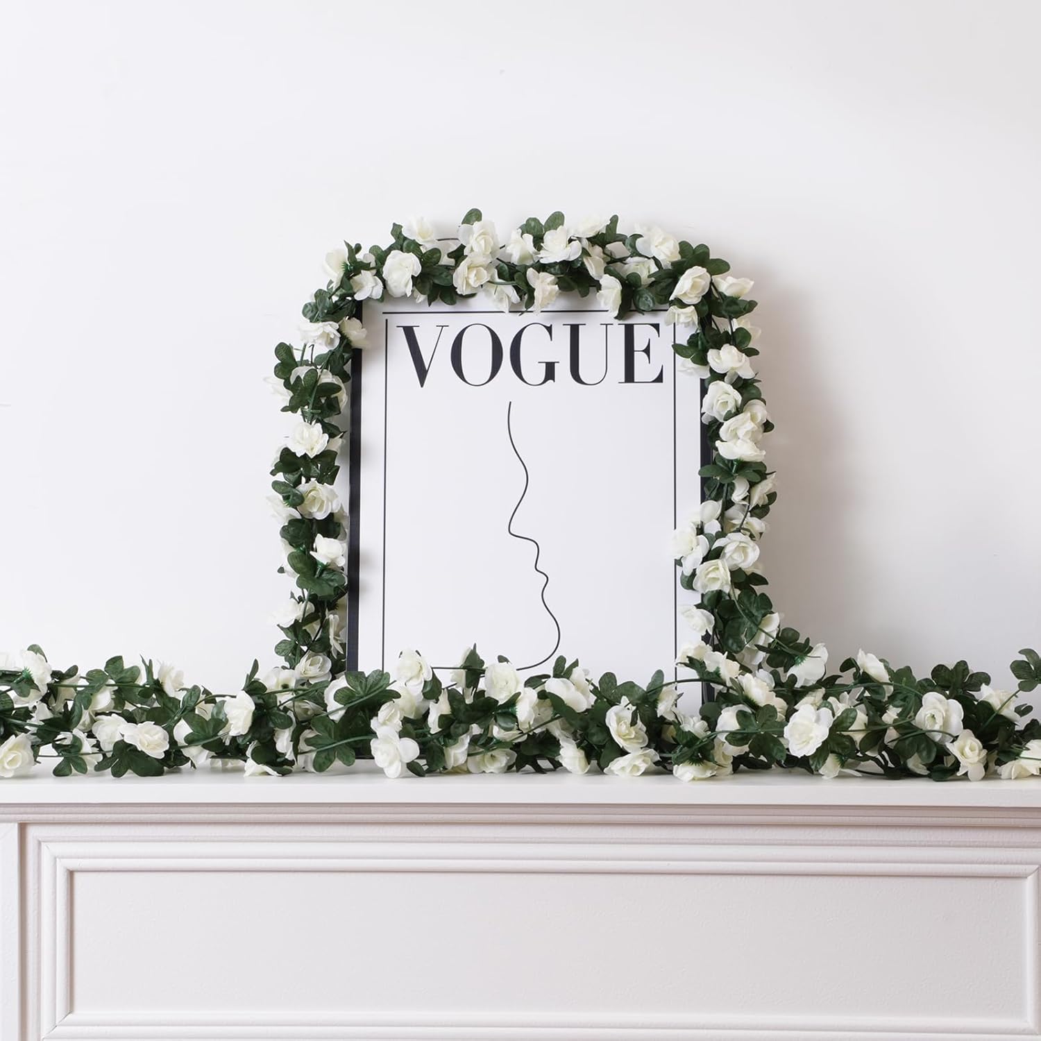 10 Pcs 82FT Flower Garland, Artificial Rose Garland Flowers Plants Fake Flower Hanging Rose Ivy, Birthday Party Valentine's Day Wedding Wall Arch Decor(White)