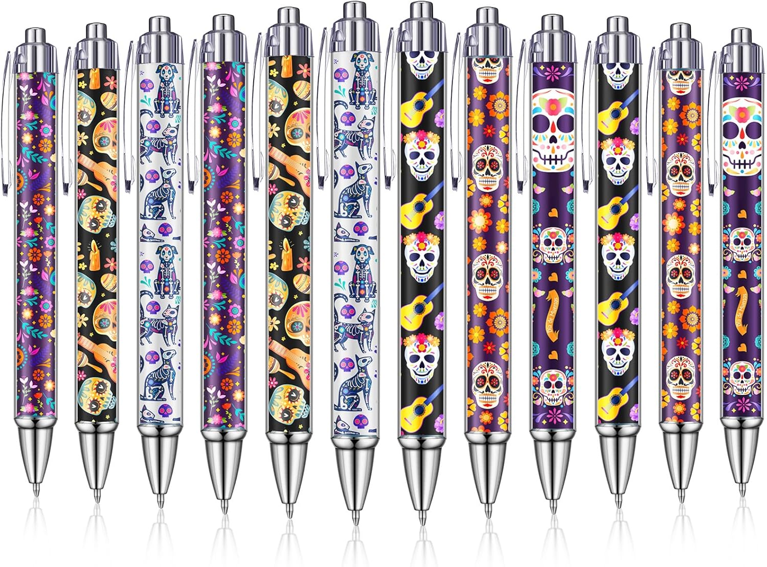 - Classic Skull Pattern: these skull pens are printed with classic colorful sugar skull characters; Ideal for honoring the dead and a wonderful memory of traditional mexican festivals; Ideal for Halloween, mexican birthday parties as gifts