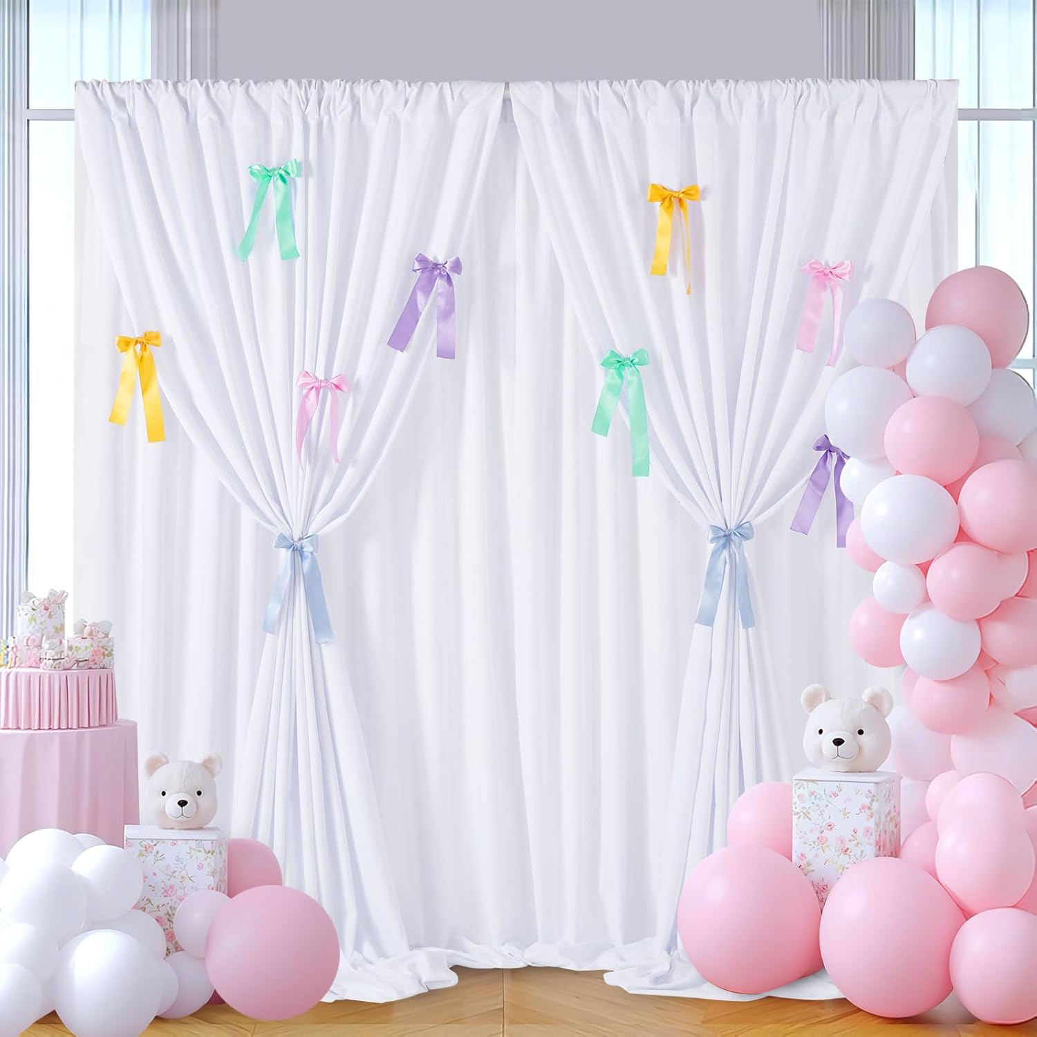 - 【Package Includes】: Included 2 panels 5.8x8ft polyester background, 20 double - sided satin bows and 2 pack of rubber bands, let you DIY your own unique decoration!