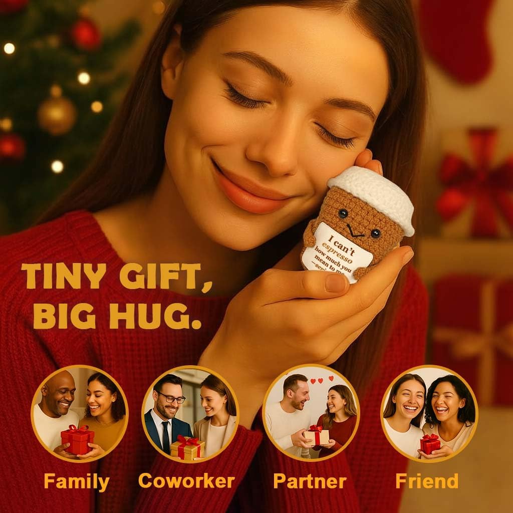 Coffee Lover Gift for Women Men, Cute Brithday Gifts for Boyfriend Girlfriend, Romantic Anniversary I Love You Gift for Him Her Couple, Positive Espresso Handmade Crochet