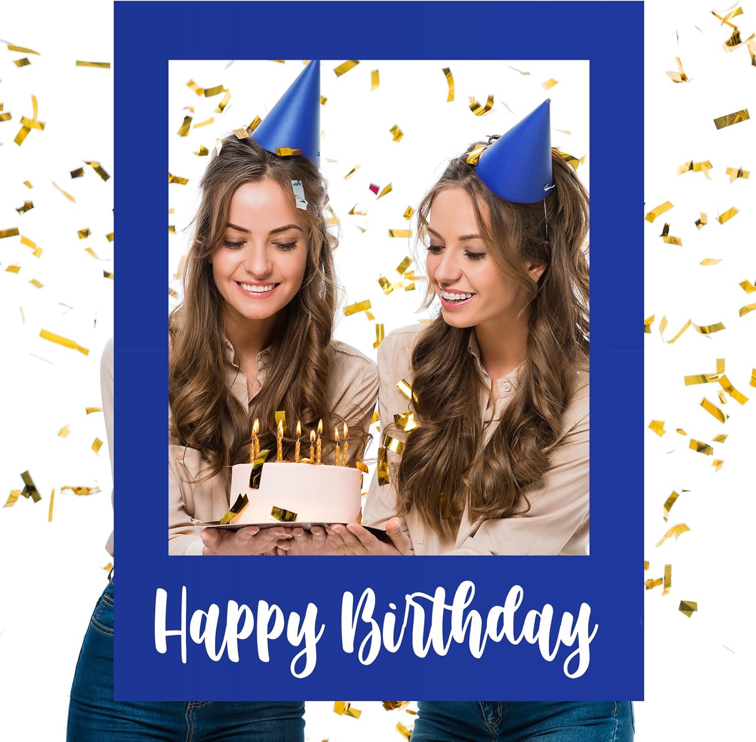 32 x 24 Inch Large Photo Booth Props Picture Frame Happy Birthday Party Frame DIY Cutouts Photo Booth Props Selfie for Party Supplies Favors(Blue White,Happy Birthday)