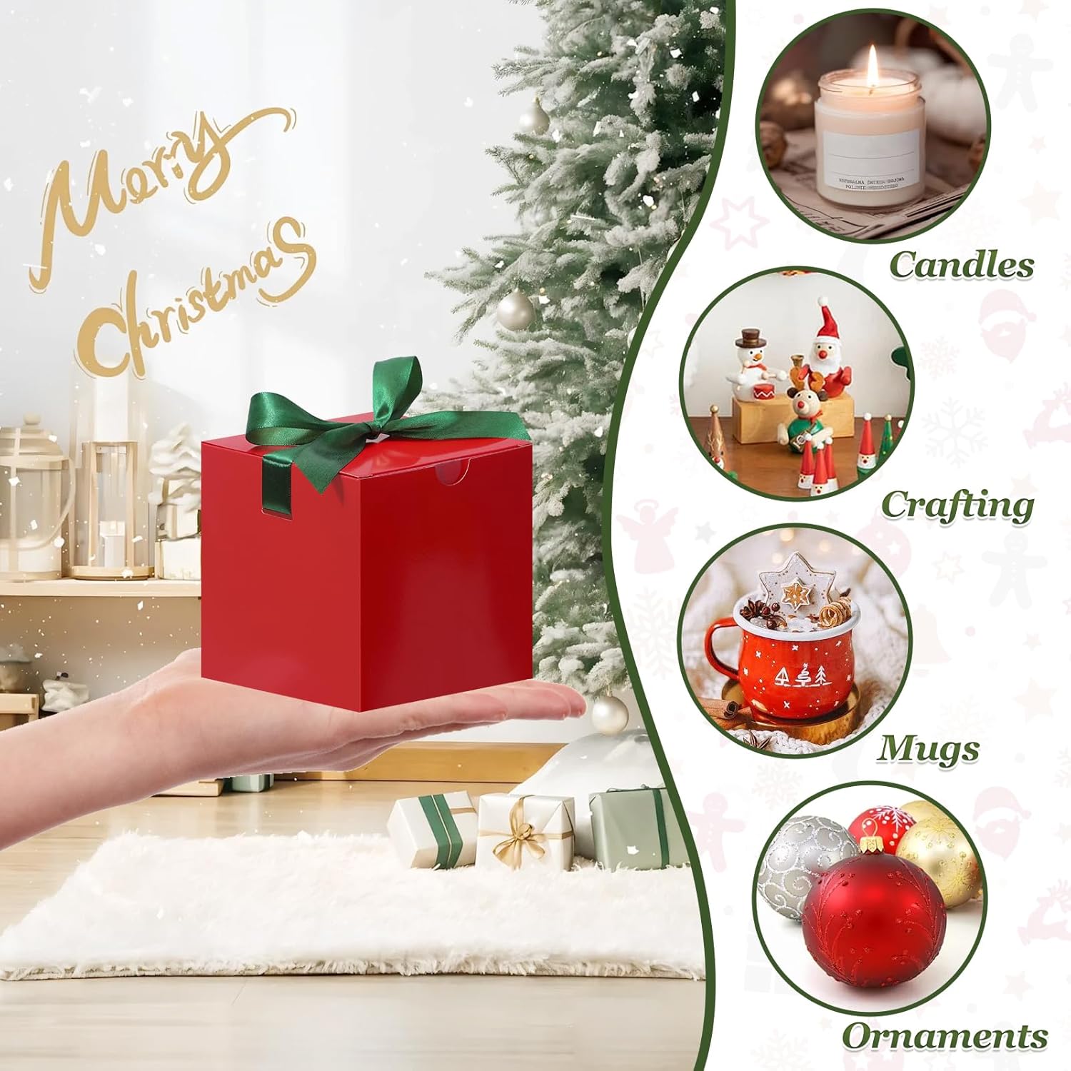 DOYIDE Small Gift Boxes, 20 Pack 5x5x5 Inch Red Elegant Paper Boxes with Ribbons, Crafting, Christmas Gift Box Wedding Party Favor, Cupcake, Candy, Bridesmaids Proposal Box