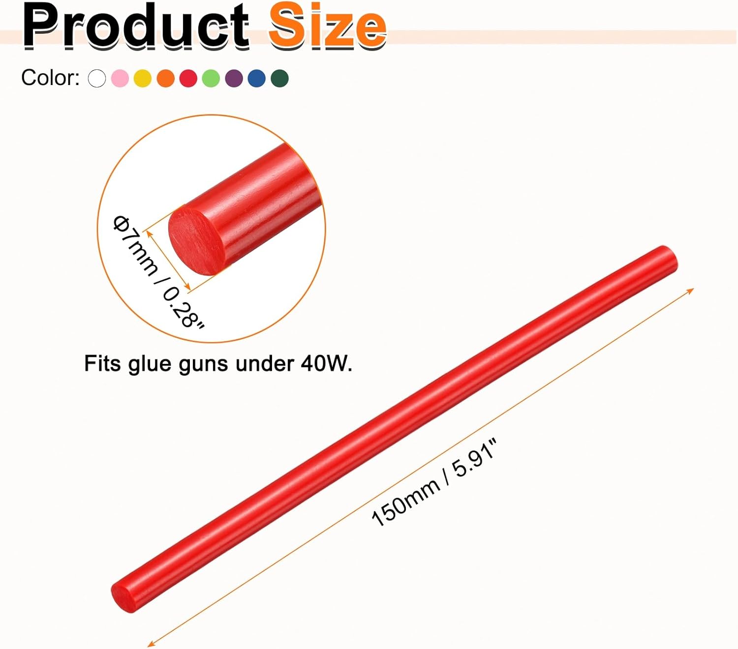 - Size - Hot glue sticks size: 7 x 150mm / 0.28 x 5.91 inch (D*L); Curing time: 10–15 seconds; Working temperature: 150°C (302°F); Softening point: 75°C (167°F).