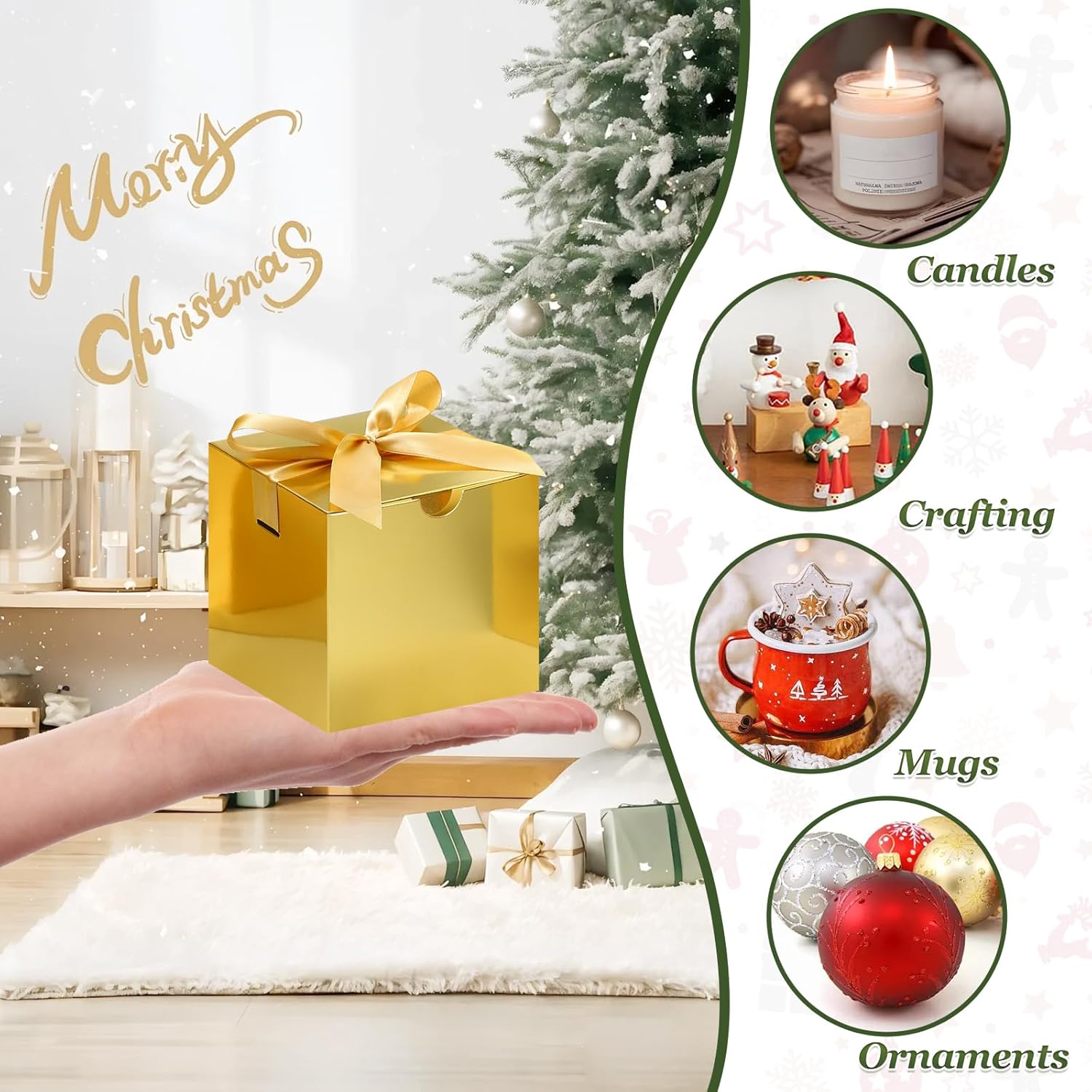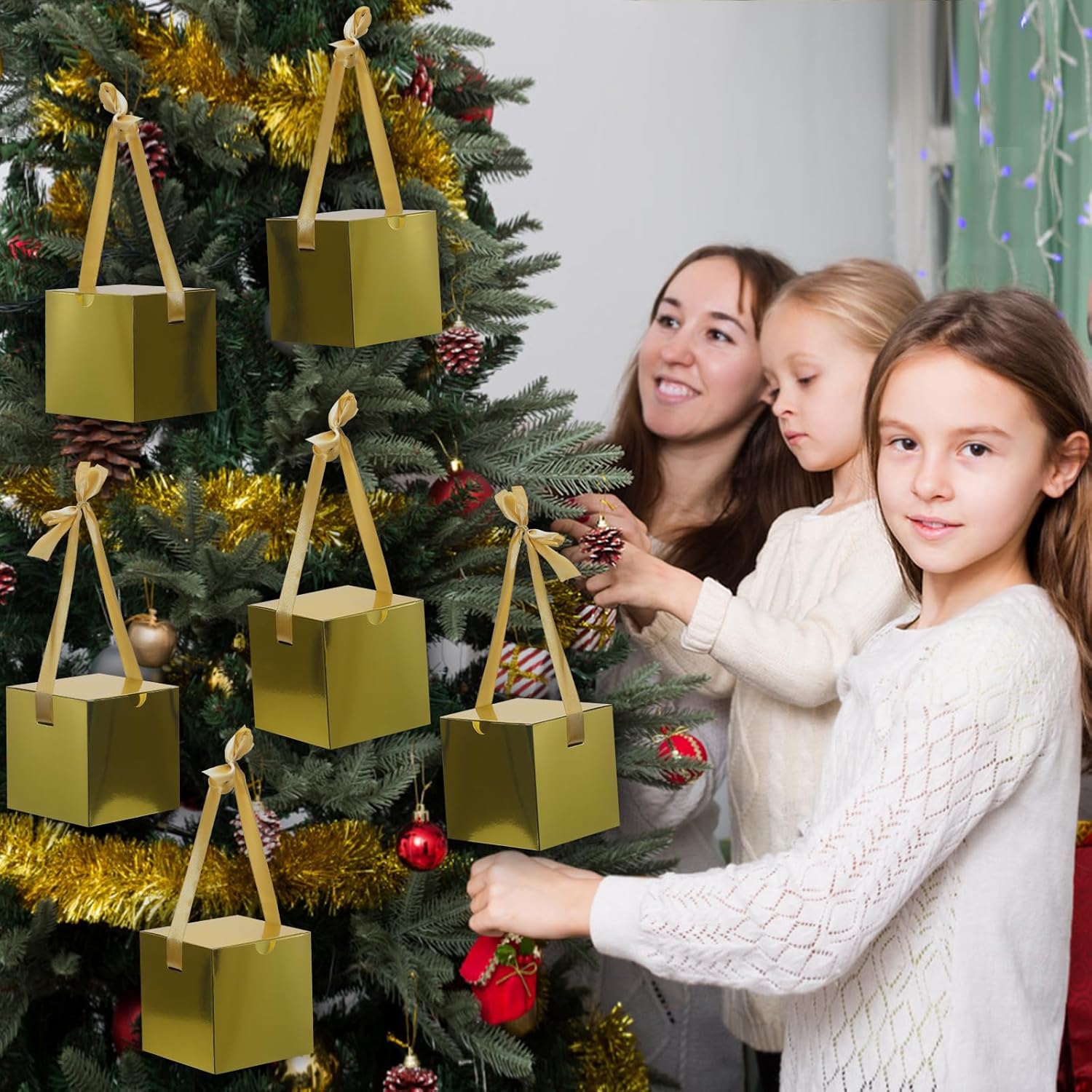 DOYIDE 20 Pack Small Gift Boxes, 6x6x6 Inch Gold Elegant Paper Boxes with Ribbons, Christmas Gift Box Crafting, Wedding Party Favor, Cupcake, Candy, Bridesmaids Proposal Box