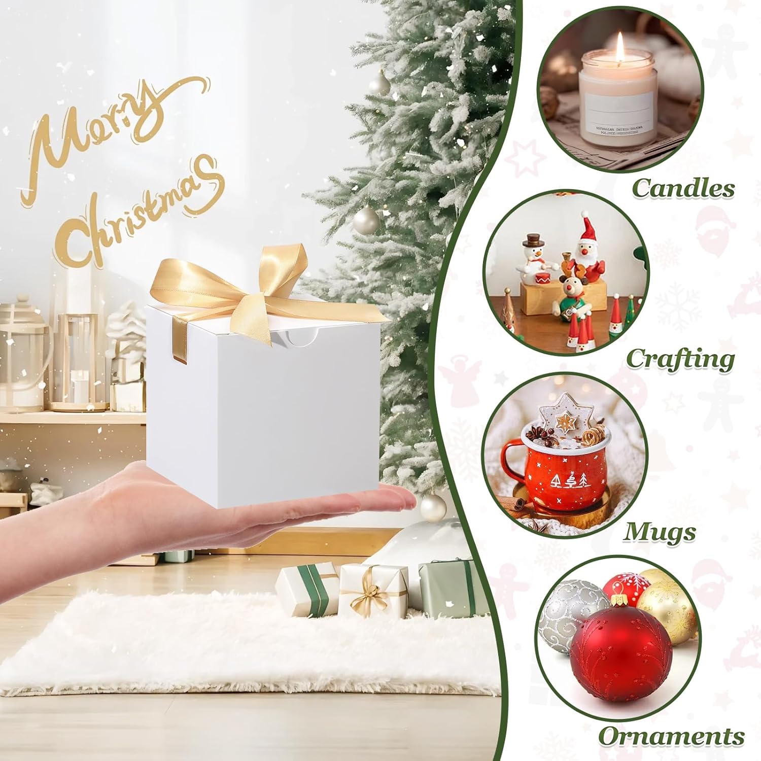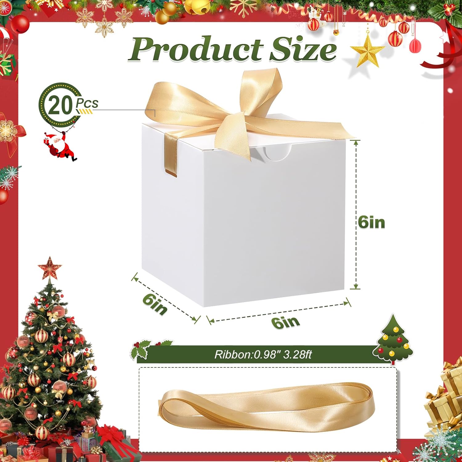 DOYIDE 20 Pack Small Gift Boxes, 6x6x6 Inch White Elegant Paper Boxes with Ribbons, Christmas Gift Box Crafting, Wedding Party Favor, Cupcake, Candy, Bridesmaids Proposal Box