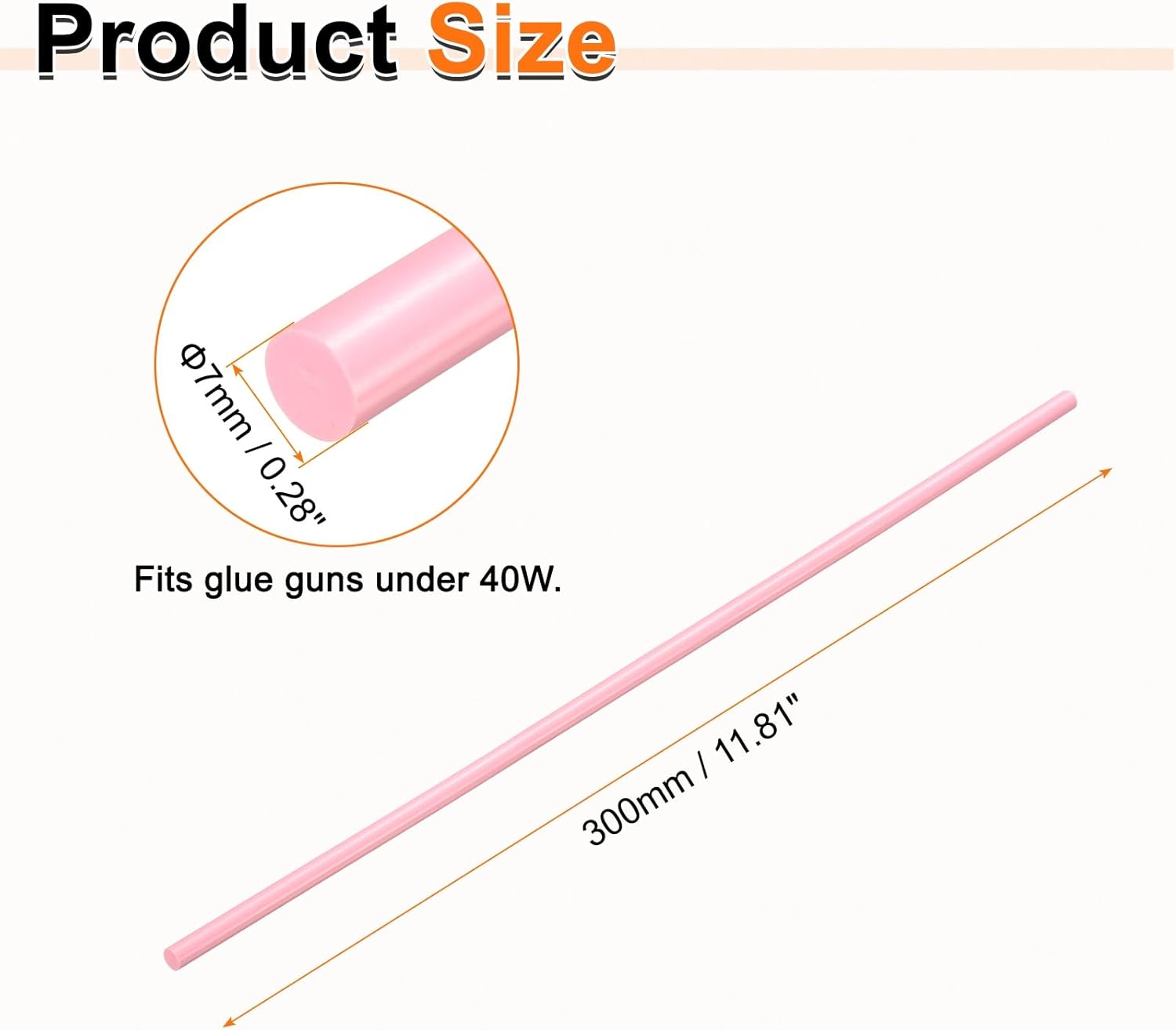 - Size - Hot glue sticks size: 7 x 300mm / 0.28 x 11.81 inch (D*L); Curing time: 10–15 seconds; Working temperature: 150°C (302°F); Softening point: 75°C (167°F).
