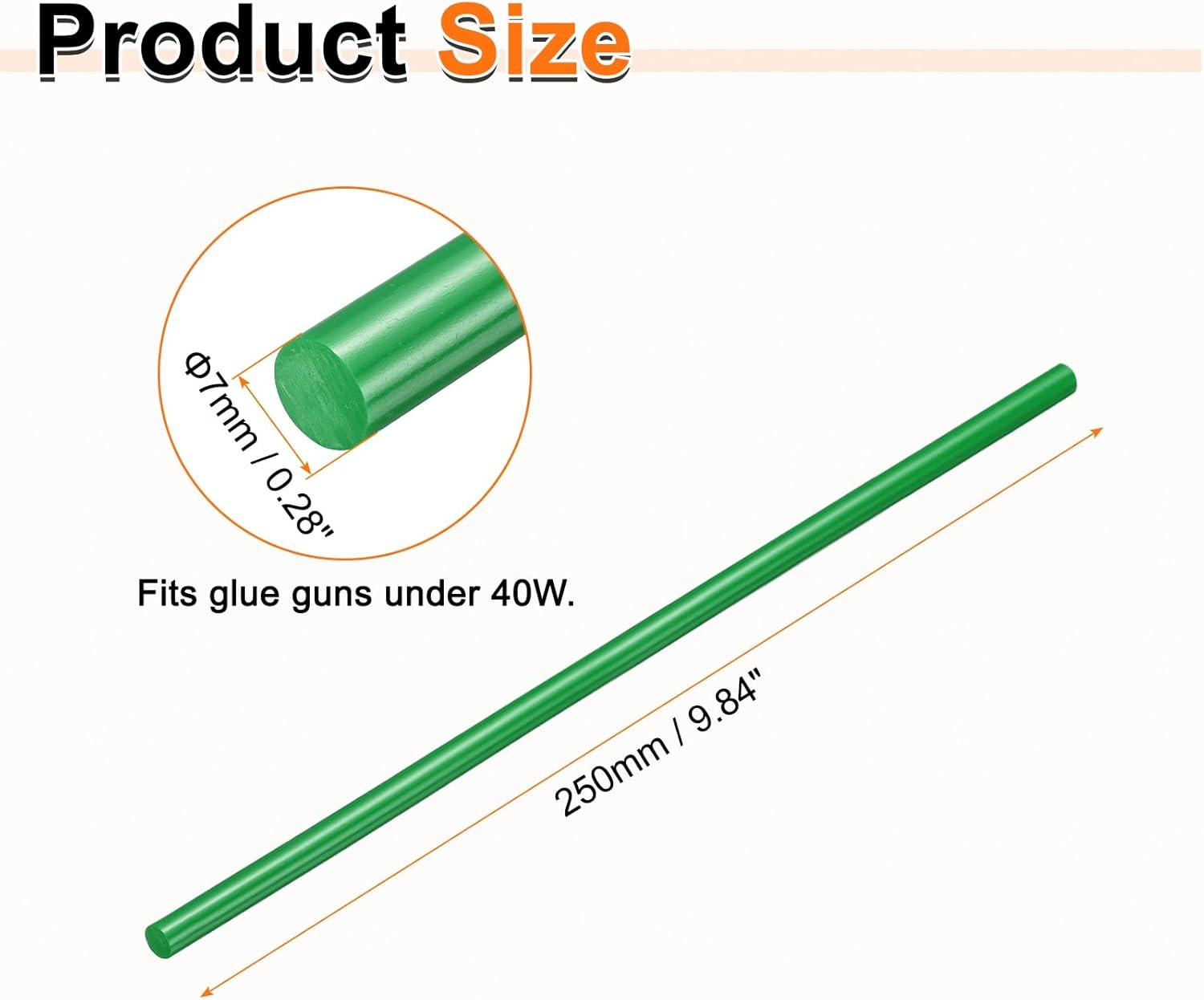 - Size - Hot glue sticks size: 7 x 250mm / 0.28 x 9.84 inch (D*L); Curing time: 10–15 seconds; Working temperature: 150°C (302°F); Softening point: 75°C (167°F).