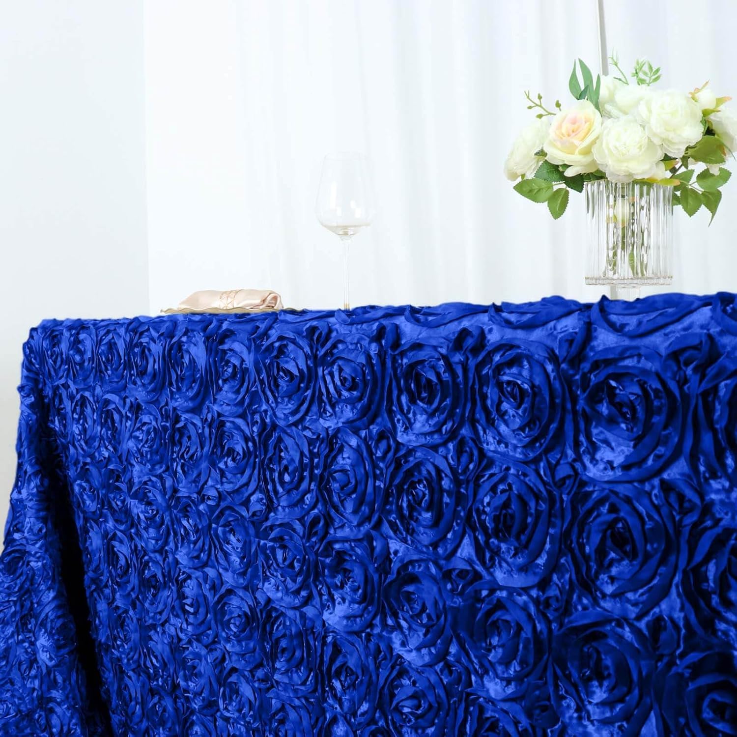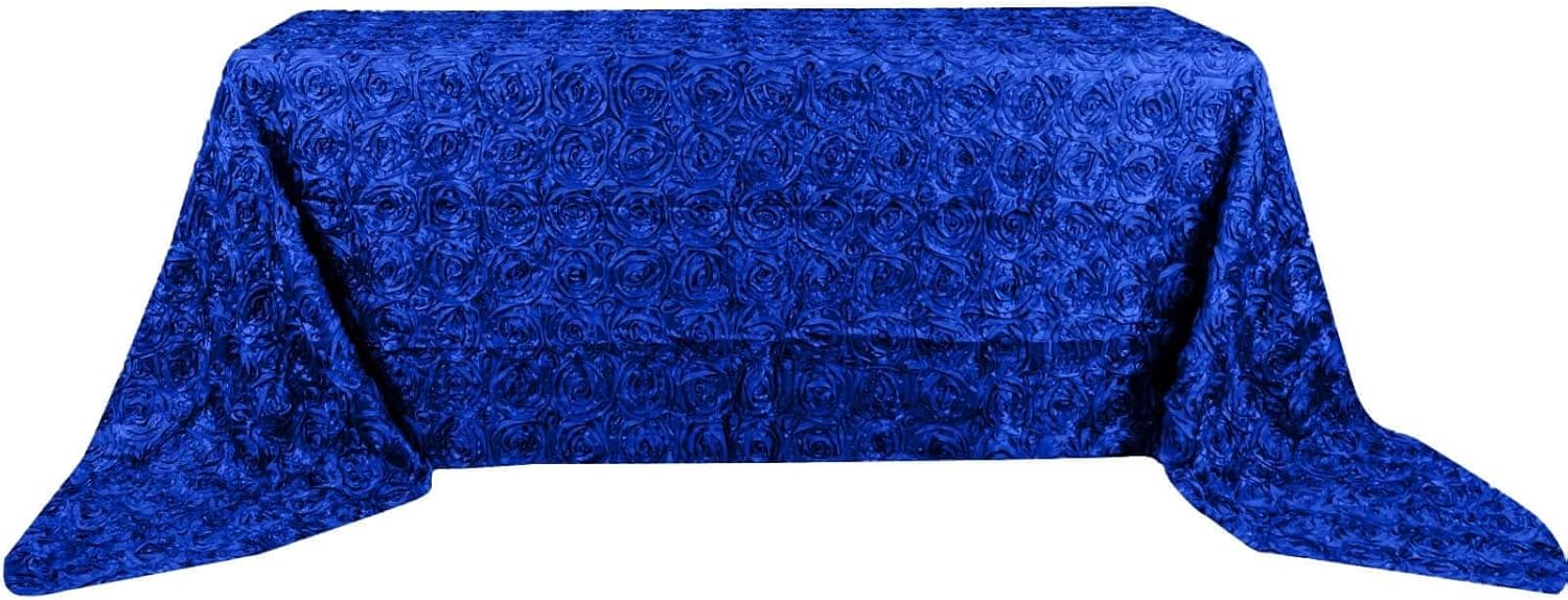 Efavormart 90"x156" Wholesale Rectangle Table Cover Royal Blue Grandiose Rosette 3D Satin Tablecloth for Wedding Party Event
