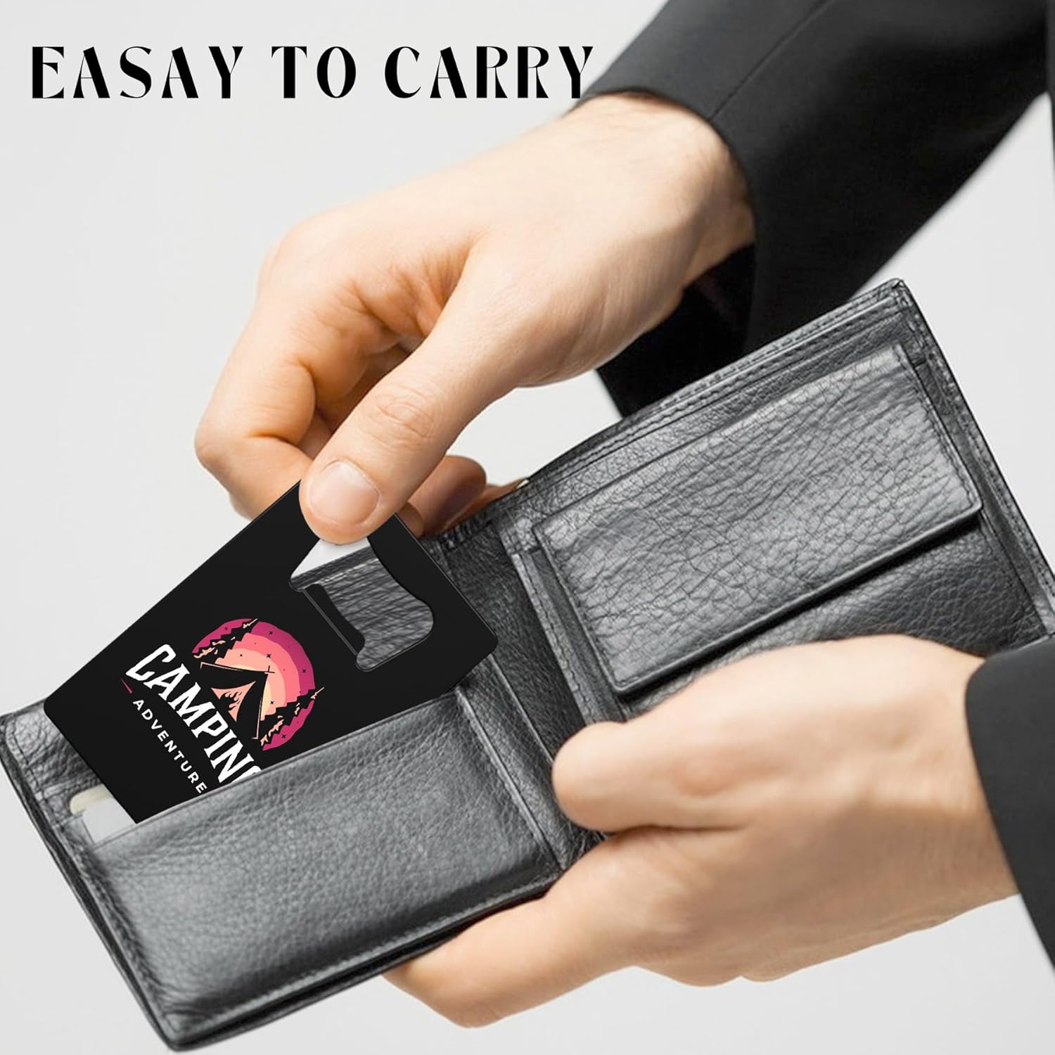 - Portable Card Design: Designed for ultimate convenience, card bottle opener slips easily into wallet, pocket, making it perfect companion for any adventure. The small and compact styling ensures it won't create bulk while the rounded corners prevent snagging