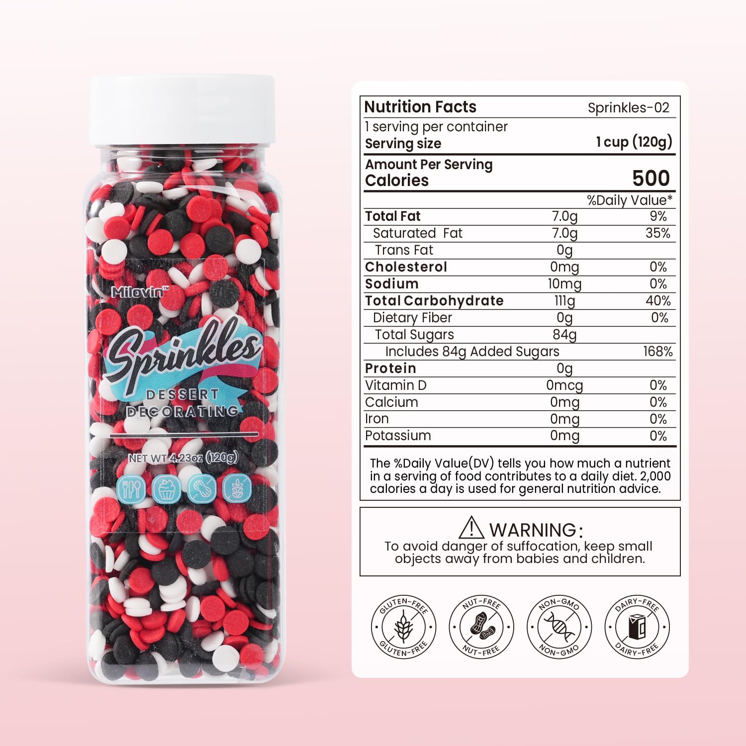 - High Quality and Safe: Made with food-grade ingredients. Edible, Nut-free, Dairy-free, Non-GMO. Our red and black white sprinkles meet American food standards and guard your and your family's health