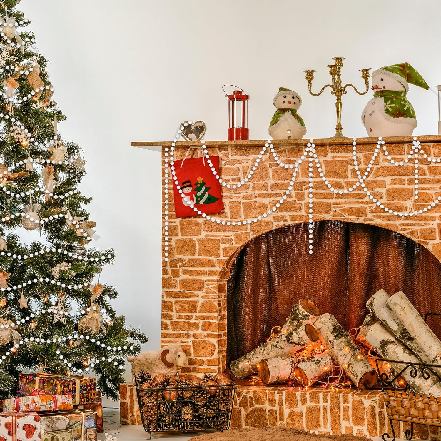 100 Feet White Christmas Tree Garland, Artificial Beads Strands Chain, Christmas Tree Decorations for DIY Xmas Tree Decorations Fireplace Balcony Home Party Decor