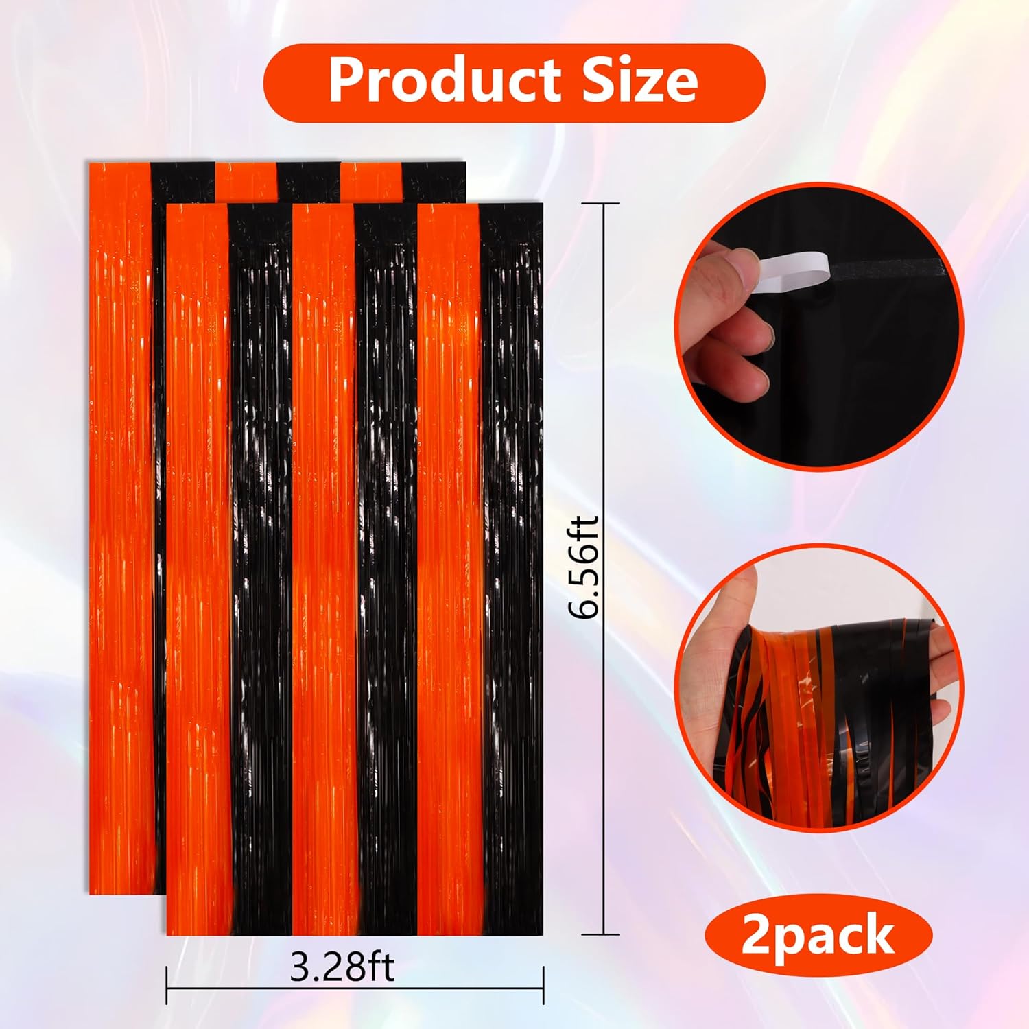 - Dimension: these foil fringe backdrop curtains are 3.28 x 6.56 ft in size; They are cuttable, you can adjust their size in your own way.
