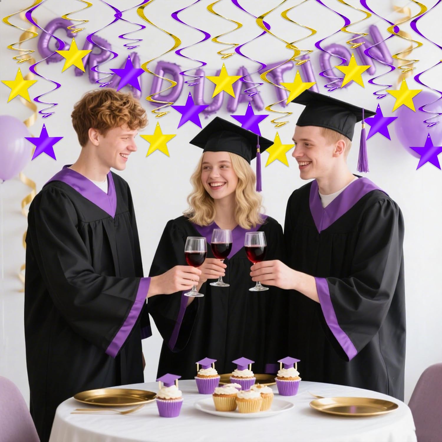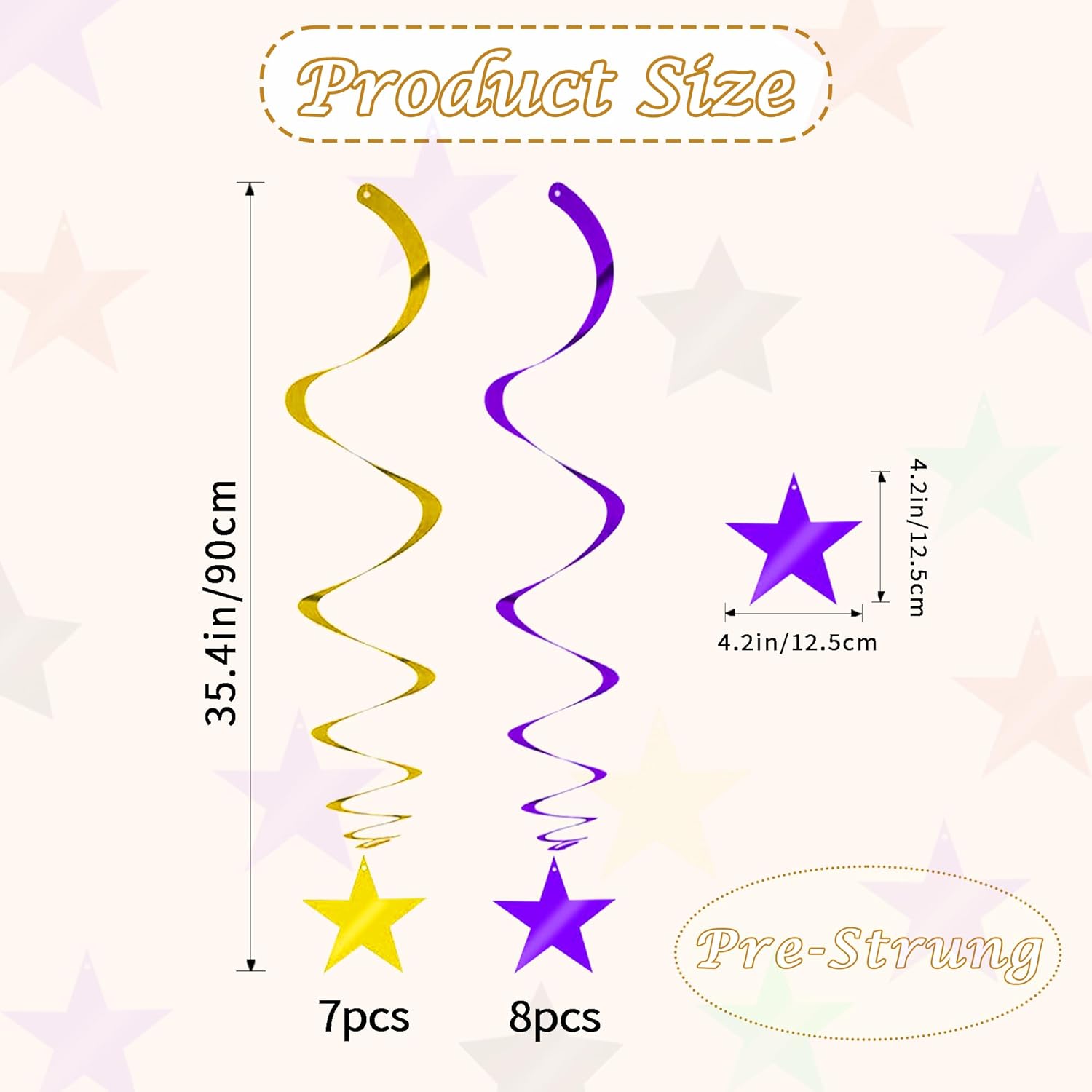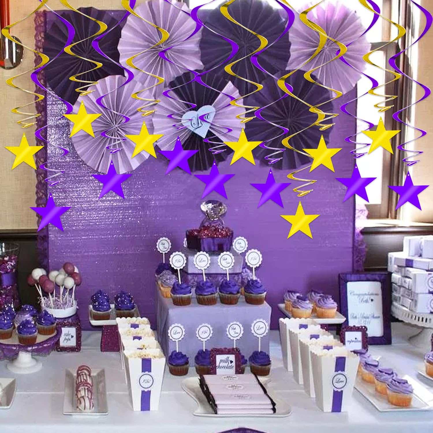 BEISHIDA Purple Gold Star Hanging Swirl Decorations, Birthday Hanging Party Supplies for Graduation Wedding Baby Shower Birthday Decorations,Pack of 15