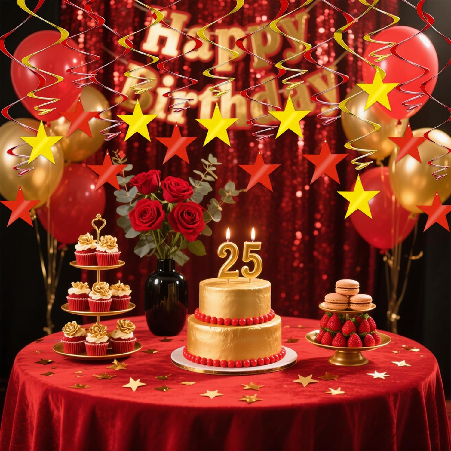 BEISHIDA Red Gold Star Hanging Swirl Decorations, Christmas Party Supplies for Birthday Graduation Wedding Christmas Decorations,Pack of 15