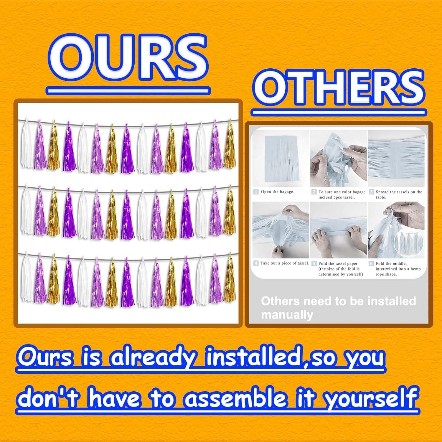 - 【Multiple Colors】Pair with metallic foil fringe garland of different colors to achieve the color combination you want. Show off your creativity by pairing this gold foil wall hanging banner with other garland in different colors to fulfill your dream of creating the perfect party scene.