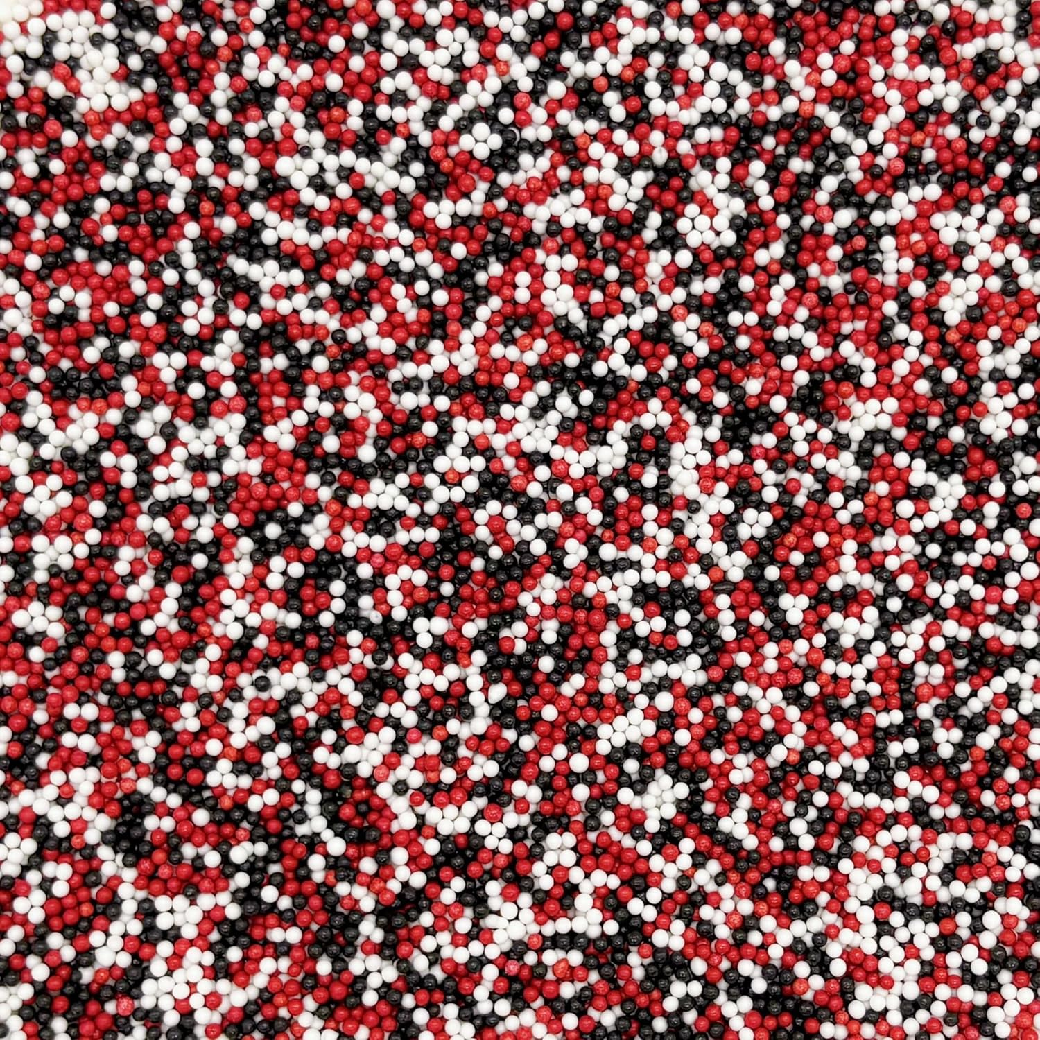 Dynastang 2mm Red & Black & White Pearls Sprinkles Edible Pearls Cake Decorating Stars Cake Decorations Cupcake Toppers Cookie Decorating Perfect for Cakes, Cupcakes, Desserts Toppings 3OZ