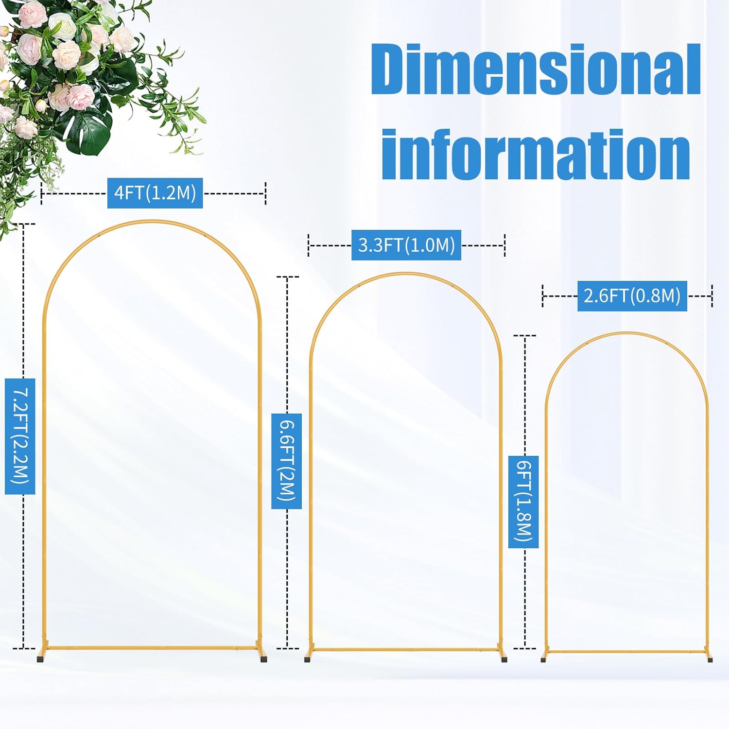 Metal Arch Backdrop Stand Set of 3 (7.2FT/6.6FT/6FT), Easy Assemble Balloon Arch Stand Kit, Decorative Backdrop Arch Stand, Gold Wedding Arch for Birthday Party and Baby Shower Decoration