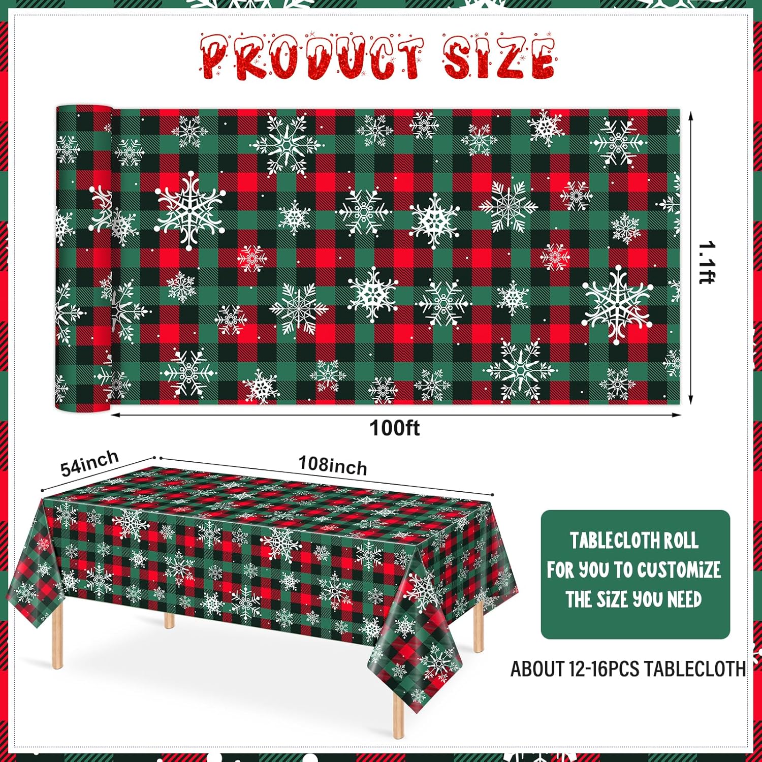 - Package include:you will get 1 roll of red and greed buffalo plaid snowflake Christmas plastic tablecloth,all over printed with white snowflake patterns on red and green buffalo plaid background,ideal for decorating your winter holiday and Christmas party supplies and decorations