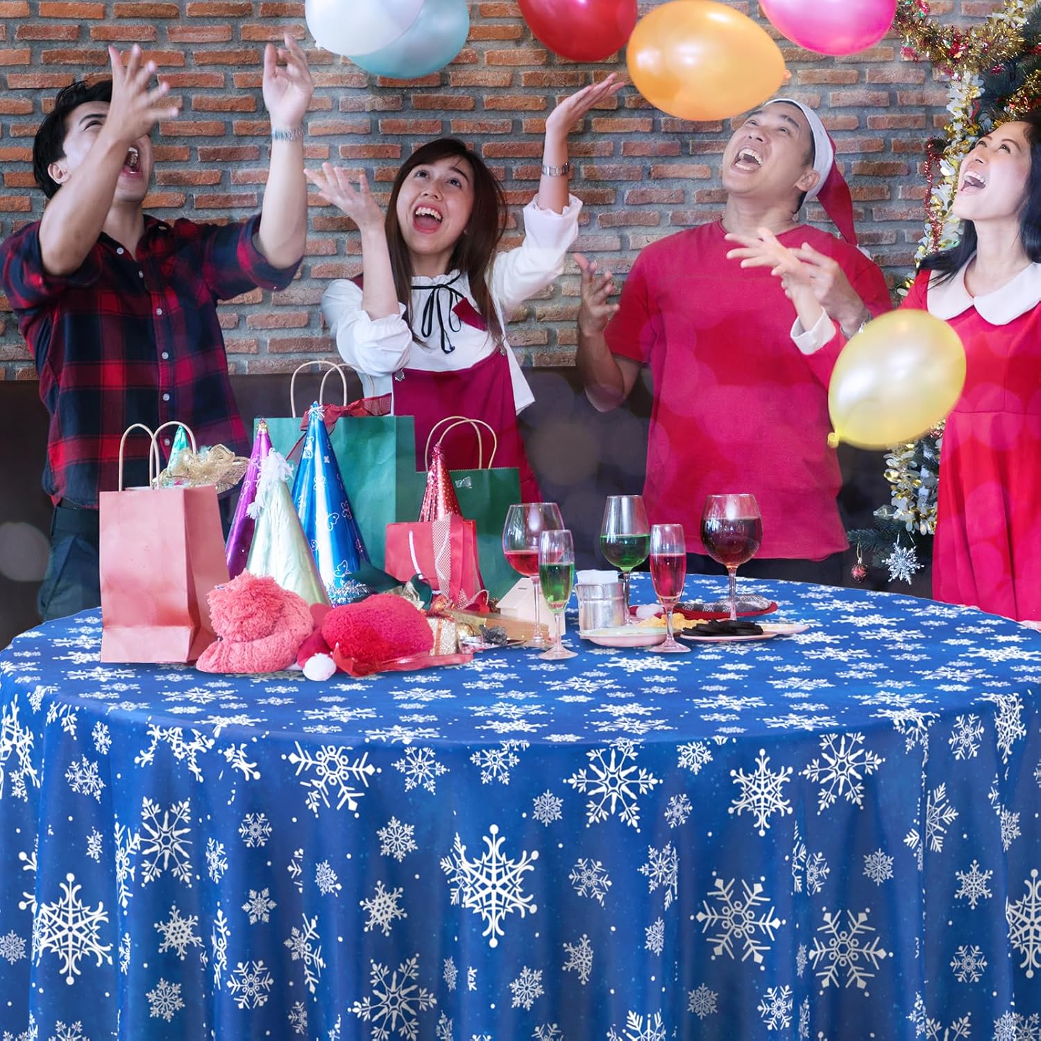 - Extra large size: these blue snowflake Christmas party tablecloth measures approx. 84 inch, which fits for various-sized tables that can accommodate 8-10 people, It’s large enough for your to hold a winter holiday and Christmas theme party with your family and friends to share happiness