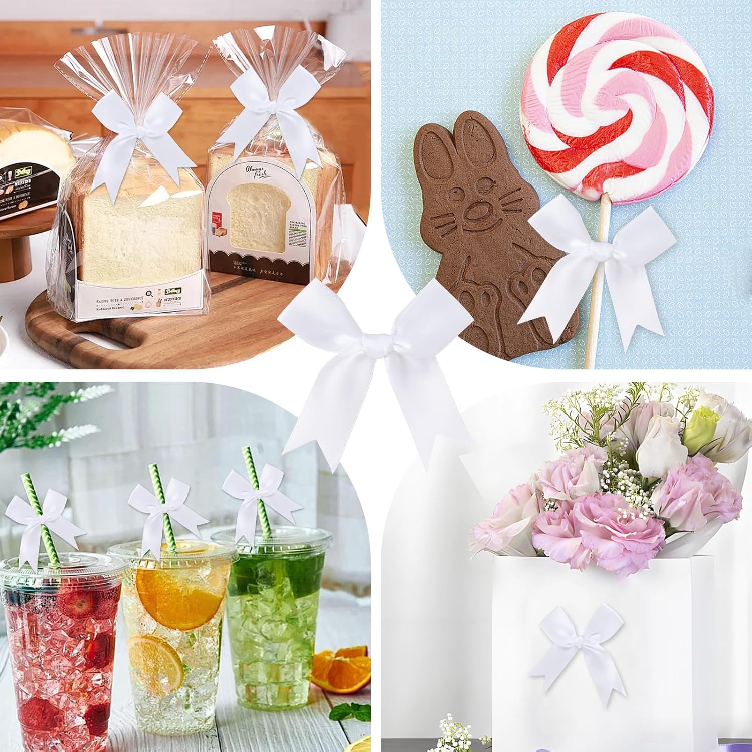 Feluwi White Gift Wrap Bows (50 Pcs) - 3.3 Inch Elegant Plastic-Free Bows for Christmas Gifts, Birthday Presents, Wedding Friendly Party Supplies, Baby Shower, Gift Bags Decorative Accessories