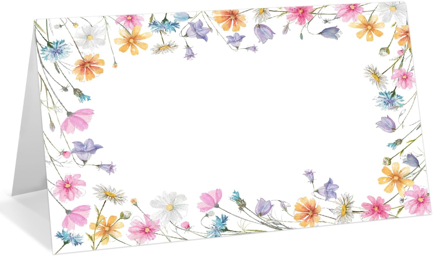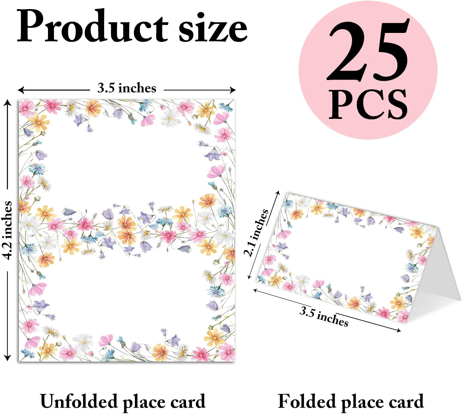 25 Pack Wildflowers Place Cards, Editable Name Cards for Table Setting, Tent Cards Food Label for Dinner Party, Bridal Shower, Wedding, Baby Shower and Events -T07