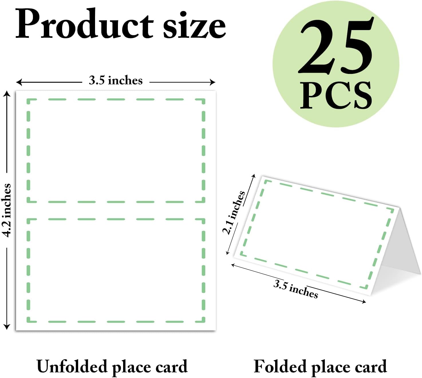 25 Pack Green Lines Place Cards, Editable Name Cards for Table Setting, Tent Cards Food Label for Dinner Party, Bridal Shower, Wedding, Baby Shower and Events -T20