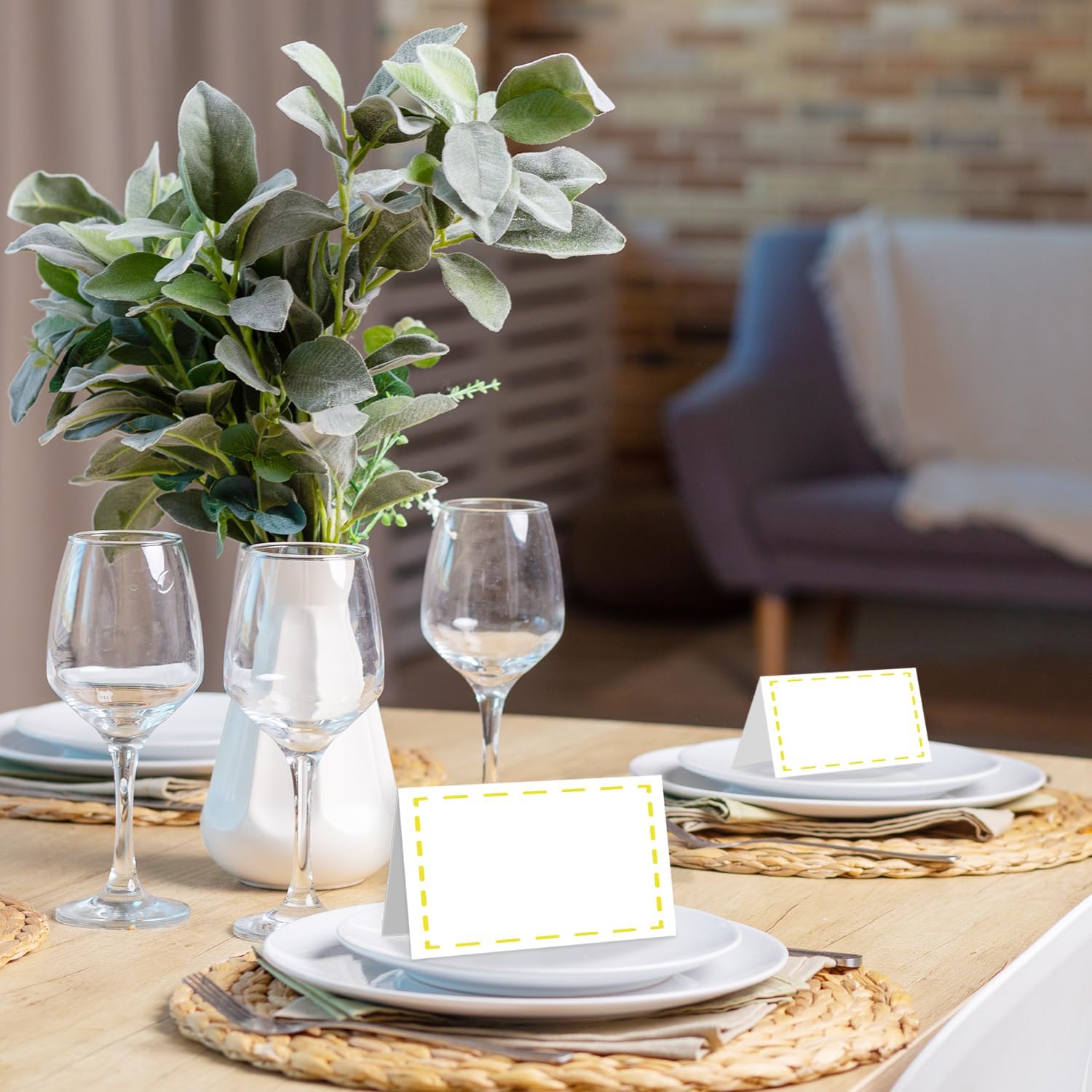 25 Pack Yellow Lines Place Cards, Editable Name Cards for Table Setting, Tent Cards Food Label for Dinner Party, Bridal Shower, Wedding, Baby Shower and Events -T21
