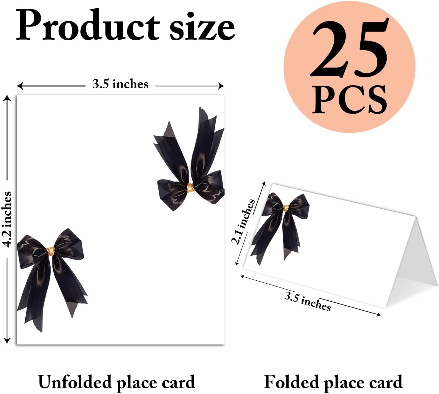 25 Pack Black Bow Place Cards, Editable Name Cards for Table Setting, Tent Cards Food Label for Dinner Party, Bridal Shower, Wedding, Baby Shower and Events -T29