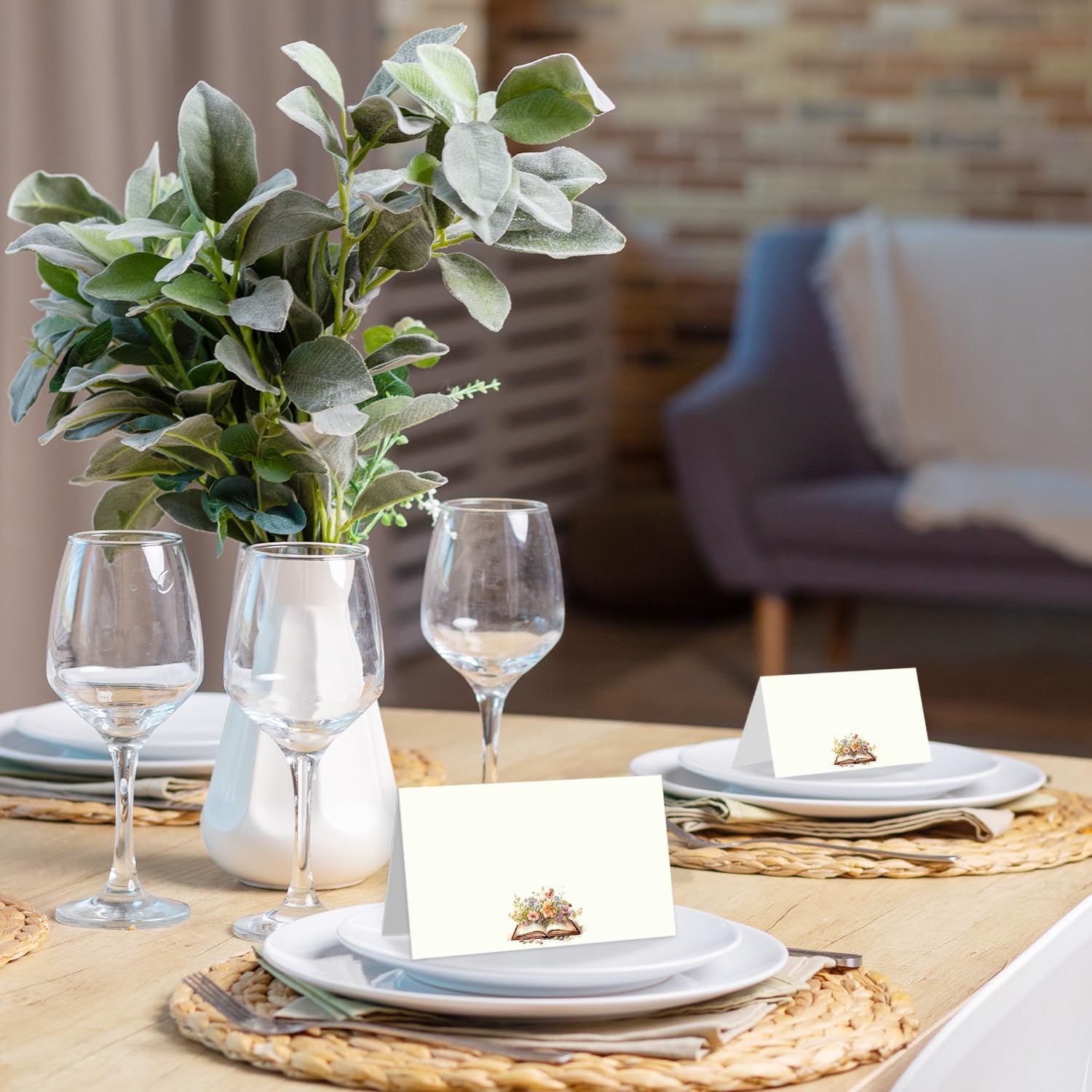 25 Pack Floral Book Theme Place Cards, Editable Name Cards for Table Setting, Tent Cards Food Label for Dinner Party, Bridal Shower, Wedding, Baby Shower and Events -T04