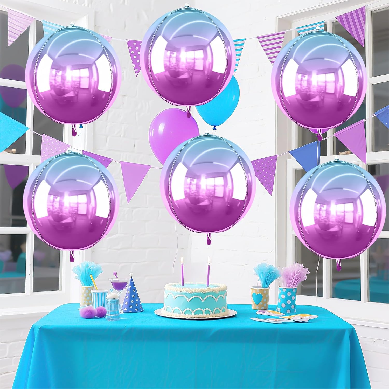 - Package: You will receive 6pcs 22inch 4D gradient purple round foil balloon, 1 straw + 1 roll of ribbon. This mylar balloons purple are perfect for your purple iridescent themed party.