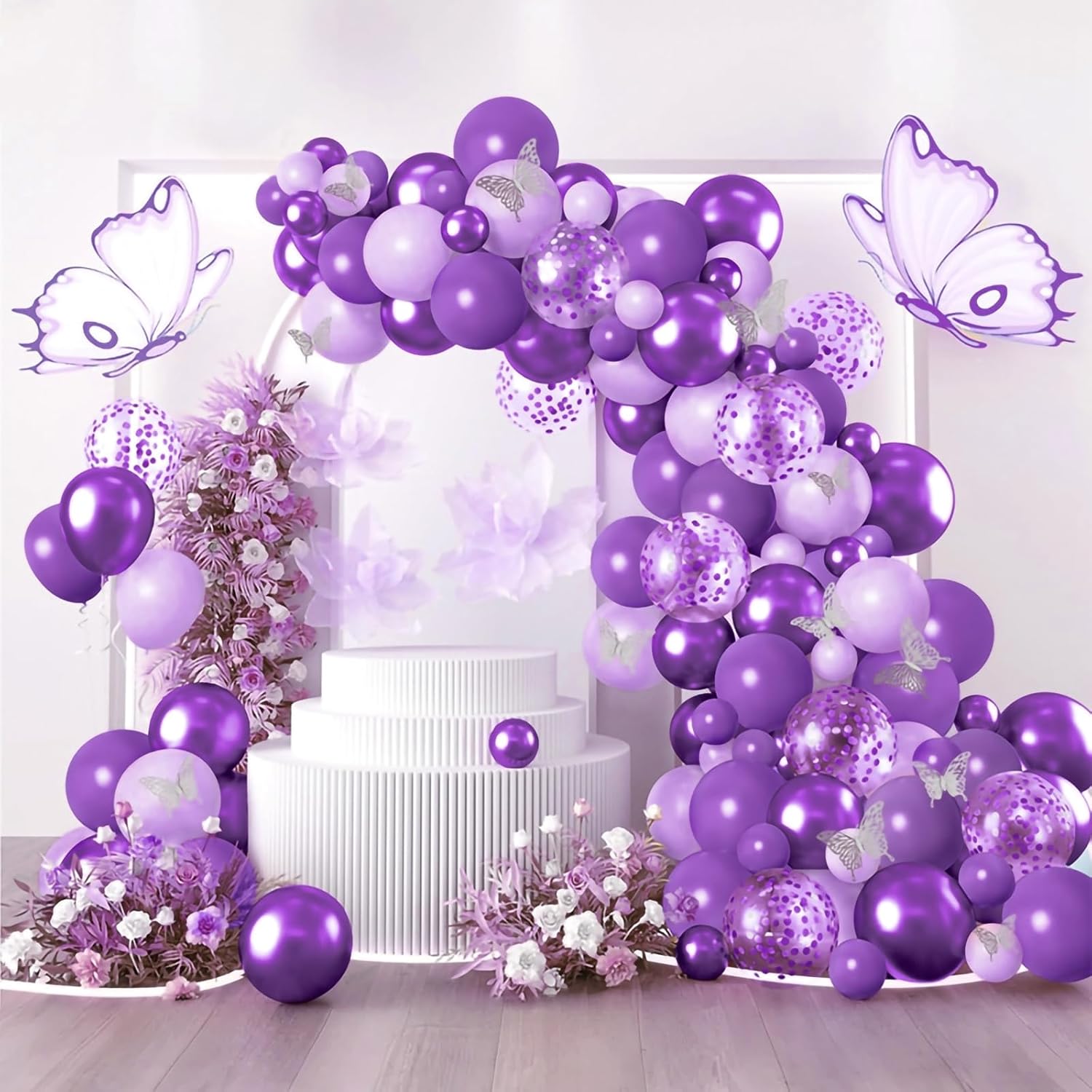 - What You Will Get - Our Purple balloons kit includes 20 pcs lavender purple balloons, 20 pcs purple balloons, 10 pcs purple confetti balloons,10 pcs metallic purple balloons, 1 purple ribbon and 1 white ribbon