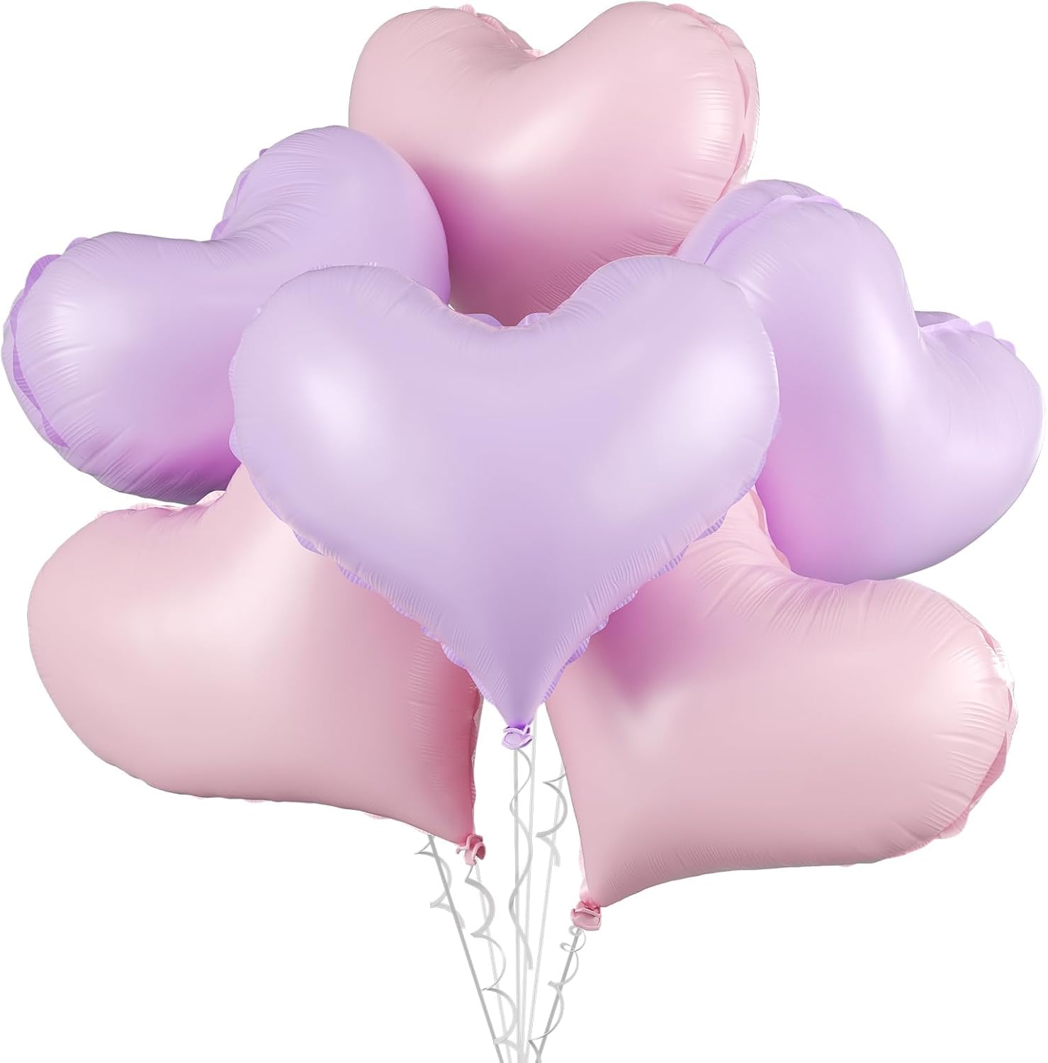 - Package: This set includes 6pcs of 24inch heart foil balloons(purple*3,pink*3),1 ribbon,and 1 straw.The generous size makes these balloons perfect for transforming any space into a festive celebration venue, whether you're decorating for a wedding arch, photo backdrop, or party centerpiece.