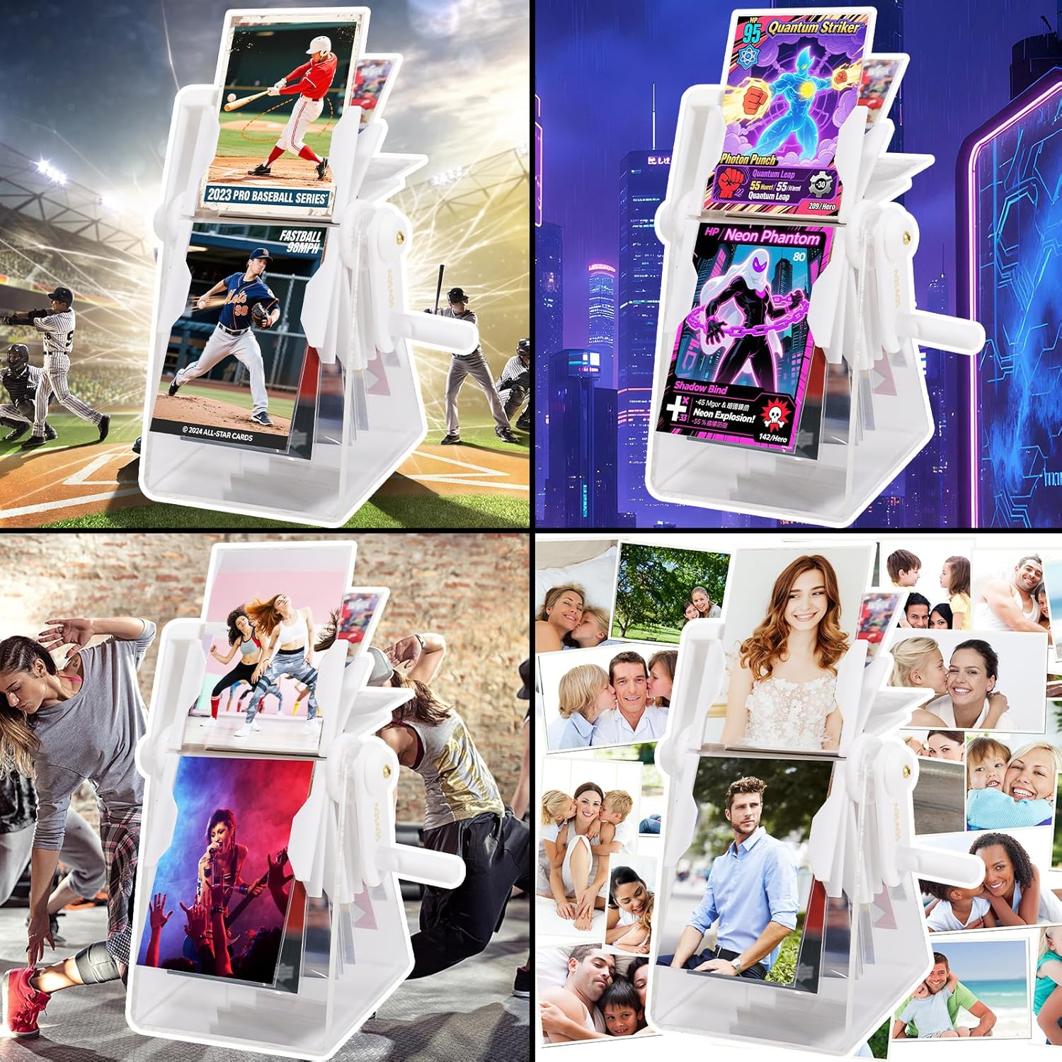 - 【24-Slot Rotating Card Display Stand】 Hold and display 24 standard trading cards (2.5"x3.5"). The unique crank handle lets you effortlessly flip through your entire collection in a fun, space-saving way