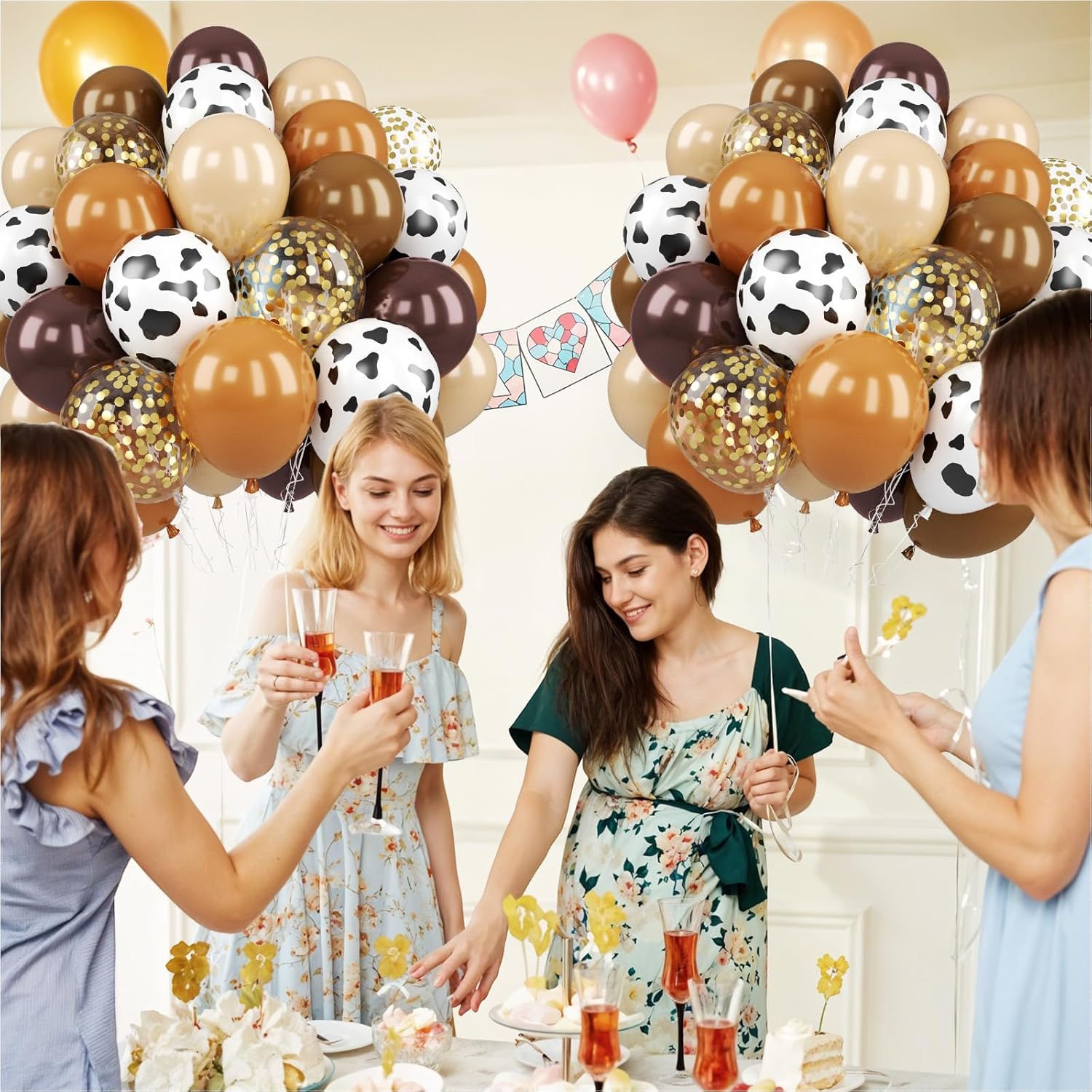- For Most Scenarios β Ideal for cowboy-themed parties, farm animal celebrations, boy's birthdays, and rustic picnic events, these brown, gold, and cow-print balloons add a playful yet stylish touch to your decor. Whether you're planning a wild first birthday, a country-style baby shower, or a western-themed gathering, the mix of earthy tones and bold prints brings a fun and outdoorsy vibe to photo booths, party tables, and backdrops.