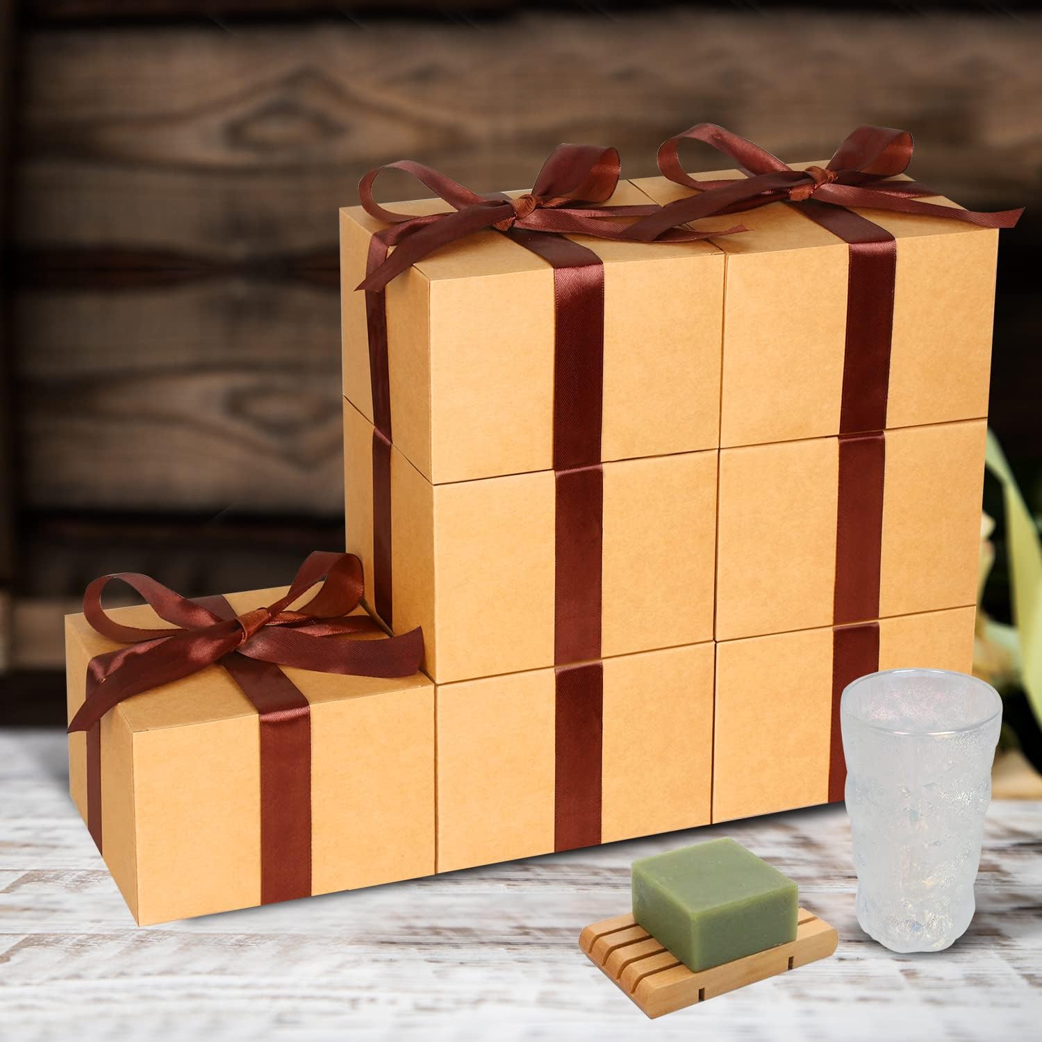 COTOPHER Small Gift Boxes 10 Pack 6x6x4 inches Brown Gift Boxes with Lids for Gifts, Crafting, Wedding Party Favor, Cupcake Box, Candy, Bridesmaids Proposal Box
