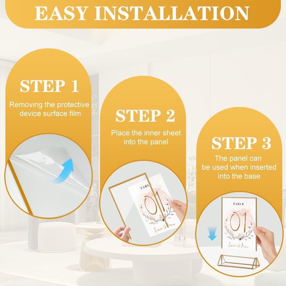 - Insert Design and Drop-resistant: Designed to withstand the demands of daily use, our wedding gold table number holders are drop-resistant and highly stable. The bottom of the acrylic display stand is designed with triangular slot inserts for easy assembly or disassembly
