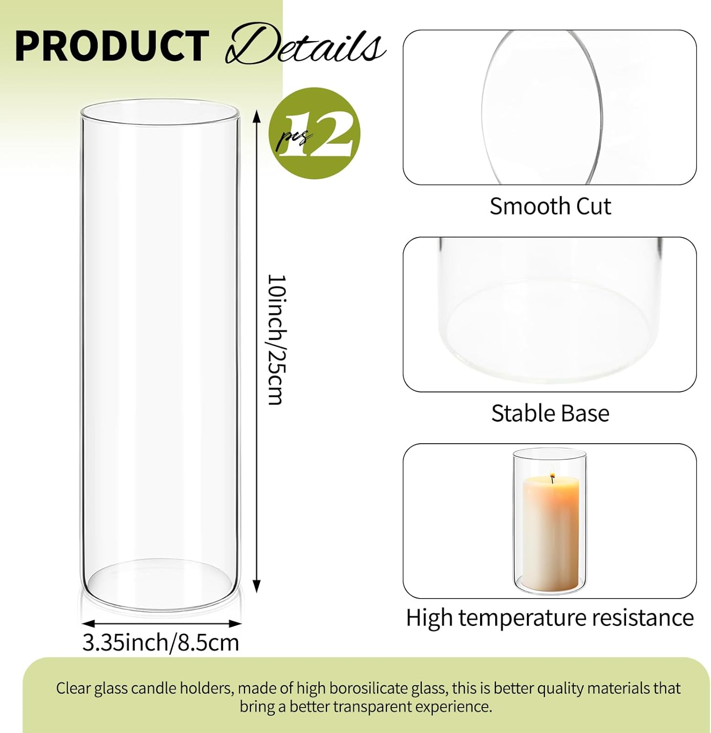 12Pack Glass Cylinder Vases for Centerpieces - 10 Inch Tall Flower Vase for Wedding Decorations, Floating Candle Holder Vase Bulk,Glass Hurricane Candle Holders for Table Shelf, Party, Home Decor