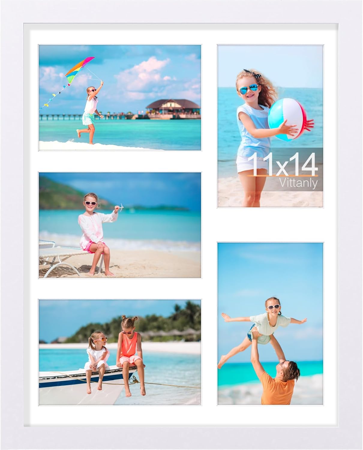 Vittanly 11x14 Collage Picture Frame, Displays 5Pcs 4x6 Pictures with Mat, Picture Frames Collage Wall Decor, White, 1 Pack